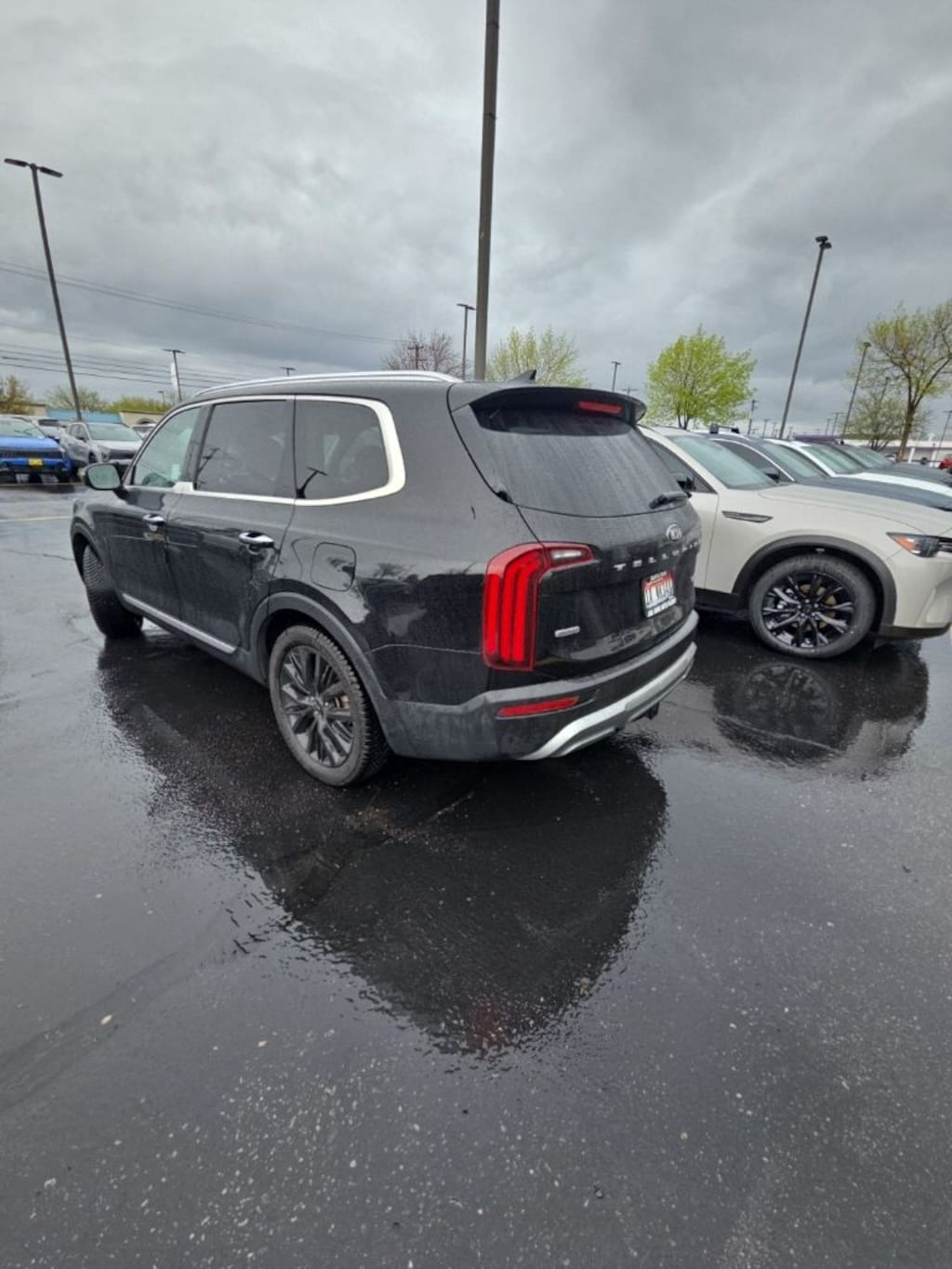 Certified. Black Copper 2021 Kia Telluride SX AWD 8-Speed Automatic 3.8L V6 DGI DOHC Dual CVVT 10 Speakers, 110V Inverter, 3.648 Axle Ratio, 3rd row seats: split-bench, 4-Wheel Disc Brakes, ABS brakes, Air Conditioning, Alloy wheels, AM/FM radio: SiriusXM, Apple CarPlay & Android Auto, Auto High-beam Headlights, Auto-dimming Rear-View mirror, Automatic temperature control, Brake assist, Bumpers: body-color, Carpeted Floor Mats, Compass, Delay-off headlights, Driver door bin, Driver vanity mirror, Dual front impact airbags, Dual front side impact airbags, Electronic Stability Control, Emergency communication system: 911 Connect, Four wheel independent suspension, Front anti-roll bar, Front Bucket Seats, Front Center Armrest, Front dual zone A/C, Front fog lights, Front reading lights, Fully automatic headlights, Garage door transmitter: HomeLink, Heads-Up Display, Heated & Ventilated 2nd Row Seats, Heated & Ventilated Front Bucket Seats, Heated door mirrors, Heated front seats, Heated steering wheel, Illuminated entry, Knee airbag, Leather Seat Trim, Leather Shift Knob, Leather steering wheel, Low tire pressure warning, Memory seat, Navigation System, Occupant sensing airbag, Outside temperature display, Overhead airbag, Overhead console, Panic alarm, Passenger door bin, Passenger vanity mirror, Power door mirrors, Power driver seat, Power Liftgate, Power moonroof, Power passenger seat, Power steering, Power windows, Premium Cloth Headliner & Pillar Trim, Premium Nappa Leather Seat Trim, Radio data system, Radio: AM/FM/SIRIUS Premium Audio, Rain-Sensing Front Windshield Wipers, Rear air conditioning, Rear anti-roll bar, Rear audio controls, Rear reading lights, Rear window defroster, Rear window wiper, Reclining 3rd row seat, Remote keyless entry, Roof rack: rails only, Security system, Self Leveling Rear Suspension, Smart Key w/ Push Button and Remote Start, Speed control, Speed-sensing steering, Split folding rear seat, Spoiler, Steering wheel mounted audio controls, SX Prestige Package, Tachometer, Telescoping steering wheel, Tilt steering wheel, Tow Hitch w/Harness (TOF), Towing Package, Traction control, Trip computer, Turn signal indicator mirrors, Variably intermittent wipers, Ventilated front seats, Wheels: 7.5" x 20" Black Finish Alloy.