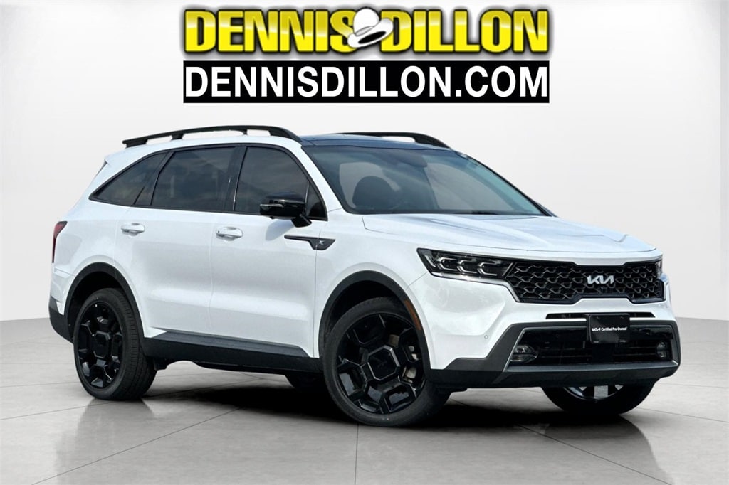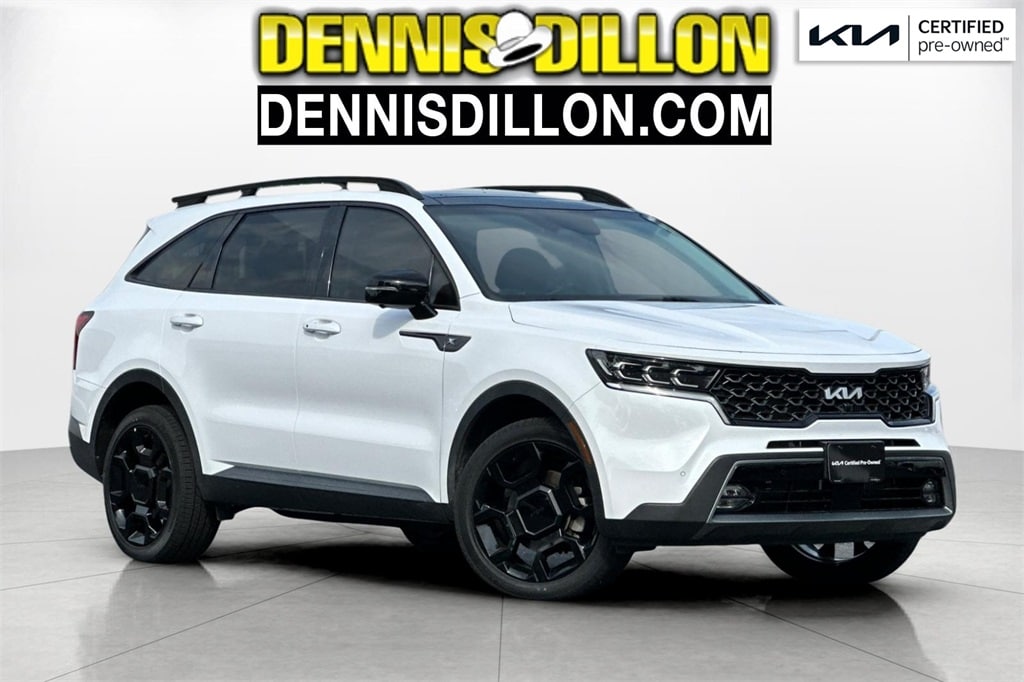 CARFAX One-Owner. Clean CARFAX. Certified. Glacial White Pearl 2022 Kia Sorento X-Line SX Prestige AWD 8-Speed DCT 2.5L I4 DGI Turbocharged DOHC 16V LEV3-ULEV70 281hp ***KIA CERTIFIED***, 12 Speakers, 3.316 Axle Ratio, 3rd row seats: split-bench, 4-Wheel Disc Brakes, ABS brakes, Air Conditioning, Alloy wheels, AM/FM radio: SiriusXM, Apple CarPlay & Android Auto, Auto High-beam Headlights, Auto-dimming Rear-View mirror, Automatic temperature control, Brake assist, Bumpers: body-color, Carpeted Floor Mats, Cross Bars X-Line, Delay-off headlights, Driver door bin, Driver vanity mirror, Dual front impact airbags, Dual front side impact airbags, EC Mirror w/HomeLink Plug-N-Play, Electronic Stability Control, Emergency communication system: UVO Link, Four wheel independent suspension, Front anti-roll bar, Front Bucket Seats, Front Center Armrest, Front dual zone A/C, Front fog lights, Front reading lights, Fully automatic headlights, Heated & Ventilated Front Bucket Seats, Heated door mirrors, Heated front seats, Heated rear seats, Heated steering wheel, Illuminated entry, Interior Lighting Kit, Knee airbag, Leather steering wheel, Low tire pressure warning, Memory seat, Navigation System, Occupant sensing airbag, Outside temperature display, Overhead airbag, Overhead console, Panic alarm, Passenger door bin, Passenger vanity mirror, Perforated Genuine Leather Seat Trim, Power door mirrors, Power driver seat, Power Liftgate, Power moonroof, Power passenger seat, Power steering, Power windows, Radio data system, Radio: AM/FM Bose Premium Audio System, Rear air conditioning, Rear anti-roll bar, Rear reading lights, Rear window defroster, Rear window wiper, Remote keyless entry, Roof rack: rails only, Security system, Smart Key w/ Push Button and Remote Start, Speed control, Speed-sensing steering, Split folding rear seat, Spoiler, Steering wheel mounted audio controls, Tachometer, Telescoping steering wheel, Tilt steering wheel, Traction control, Trip computer, Turn signal indicator mirrors, Variably intermittent wipers, Ventilated front seats, Wheels: 8.5J x 20" Matte Gray Alloy.