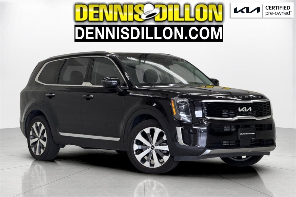 CARFAX One-Owner. Clean CARFAX. Certified. Black Copper 2022 Kia Telluride S AWD 8-Speed Automatic 3.8L V6 DOHC 20" x 7.5" Machined Alloy Wheels, 3.648 Axle Ratio, 3rd row seats: split-bench, 4-Wheel Disc Brakes, 6 Speakers, ABS brakes, Air Conditioning, Alloy wheels, AM/FM radio: SiriusXM, Apple CarPlay & Android Auto, Automatic temperature control, Brake assist, Bumpers: body-color, Carpeted Floor Mats, Delay-off headlights, Driver door bin, Driver vanity mirror, Dual front impact airbags, Dual front side impact airbags, Electronic Stability Control, Emergency communication system: 911 Connect, Four wheel independent suspension, Front anti-roll bar, Front Bucket Seats, Front Center Armrest, Front dual zone A/C, Front reading lights, Fully automatic headlights, Heated door mirrors, Heated Front Bucket Seats, Heated front seats, Illuminated entry, Knee airbag, Leather Shift Knob, Leather steering wheel, Low tire pressure warning, Navigation System, Occupant sensing airbag, Outside temperature display, Overhead airbag, Overhead console, Panic alarm, Passenger door bin, Passenger vanity mirror, Power door mirrors, Power driver seat, Power moonroof, Power steering, Power windows, Radio data system, Radio: AM/FM Display Audio System, Rear air conditioning, Rear anti-roll bar, Rear audio controls, Rear reading lights, Rear window defroster, Rear window wiper, Reclining 3rd row seat, Remote keyless entry, Roof rack: rails only, Security system, Smart Key w/ Push Button and Remote Start, Speed control, Speed-sensing steering, Split folding rear seat, Spoiler, Steering wheel mounted audio controls, Synthetic Leather Seat Trim, Tachometer, Telescoping steering wheel, Tilt steering wheel, Traction control, Trip computer, Turn signal indicator mirrors, Variably intermittent wipers.