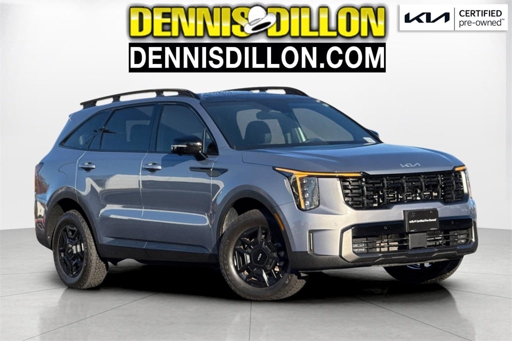 CARFAX One-Owner. Clean CARFAX. Certified. Everlasting Silver 2024 Kia Sorento X-Pro SX Prestige AWD 8-Speed DCT 2.5L I4 DGI Turbocharged DOHC 16V LEV3-SULEV30 281hp ***KIA CERTIFIED***, 12 Speakers, 3.316 Axle Ratio, 3rd row seats: split-bench, 4-Wheel Disc Brakes, ABS brakes, Air Conditioning, Alloy wheels, AM/FM radio: SiriusXM, Apple CarPlay & Android Auto, Auto High-beam Headlights, Auto-dimming Rear-View mirror, Automatic temperature control, Brake assist, Bumpers: body-color, Carpeted Cargo Mat w/Seatback Protection, Carpeted Floor Mats, Delay-off headlights, Driver door bin, Driver vanity mirror, Dual front impact airbags, Dual front side impact airbags, Electronic Stability Control, Emergency communication system: 911 Connect, Exterior Parking Camera Rear, Four wheel independent suspension, Front anti-roll bar, Front Bucket Seats, Front Center Armrest, Front dual zone A/C, Front fog lights, Front reading lights, Fully automatic headlights, Garage door transmitter: HomeLink, Heated & Ventilated Front Bucket Seats, Heated door mirrors, Heated front seats, Heated rear seats, Heated steering wheel, Illuminated entry, Knee airbag, Leather steering wheel, Low tire pressure warning, Memory seat, Navigation System, Occupant sensing airbag, Outside temperature display, Overhead airbag, Overhead console, Panic alarm, Passenger door bin, Passenger vanity mirror, Perforated Genuine Leather Seat Trim, Power door mirrors, Power driver seat, Power Liftgate, Power moonroof, Power passenger seat, Power steering, Power windows, Radio data system, Radio: AM/FM Bose Premium Audio System, Rain sensing wipers, Rear anti-roll bar, Rear reading lights, Rear side impact airbag, Rear window defroster, Rear window wiper, Remote keyless entry, Security system, Smart Key w/ Push Button and Remote Start, Speed control, Speed-sensing steering, Split folding rear seat, Spoiler, Steering wheel mounted audio controls, Tachometer, Telescoping steering wheel, Tilt steering wheel, Traction control, Trip computer, Turn signal indicator mirrors, Variably intermittent wipers, Ventilated front seats, Wheels: 7.0J x 17" Gloss Black X-Pro Alloy.