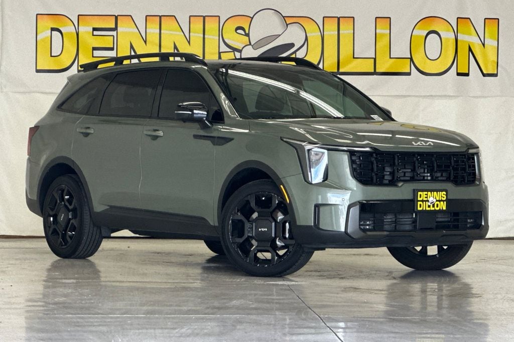 Clean CARFAX. Certified. Jungle Green 2024 Kia Sorento X-Line SX Prestige AWD 8-Speed DCT 2.5L I4 DGI Turbocharged DOHC 16V LEV3-SULEV30 281hp ***KIA CERTIFIED***, 3.316 Axle Ratio, 3rd row seats: split-bench, 4-Wheel Disc Brakes, ABS brakes, Air Conditioning, Alloy wheels, AM/FM radio: SiriusXM, Apple CarPlay & Android Auto, Auto High-beam Headlights, Auto-dimming Rear-View mirror, Automatic temperature control, Brake assist, Bumpers: body-color, Carpeted Floor Mats, Delay-off headlights, Driver door bin, Driver vanity mirror, Dual front impact airbags, Dual front side impact airbags, Electronic Stability Control, Emergency communication system: 911 Connect, Exterior Parking Camera Rear, Four wheel independent suspension, Front anti-roll bar, Front Bucket Seats, Front Center Armrest, Front dual zone A/C, Front fog lights, Front reading lights, Fully automatic headlights, Heated & Ventilated Front Bucket Seats, Heated door mirrors, Heated front seats, Illuminated entry, Knee airbag, Leather steering wheel, Low tire pressure warning, Navigation System, Occupant sensing airbag, Outside temperature display, Overhead airbag, Overhead console, Panic alarm, Passenger door bin, Passenger vanity mirror, Power door mirrors, Power driver seat, Power Liftgate, Power moonroof, Power passenger seat, Power steering, Power windows, Radio data system, Rain sensing wipers, Rear anti-roll bar, Rear reading lights, Rear side impact airbag, Rear window defroster, Rear window wiper, Remote keyless entry, Security system, Smart Key w/ Push Button and Remote Start, Speed control, Speed-sensing steering, Split folding rear seat, Spoiler, Steering wheel mounted audio controls, Tachometer, Telescoping steering wheel, Tilt steering wheel, Traction control, Trip computer, Turn signal indicator mirrors, Variably intermittent wipers, Ventilated front seats.