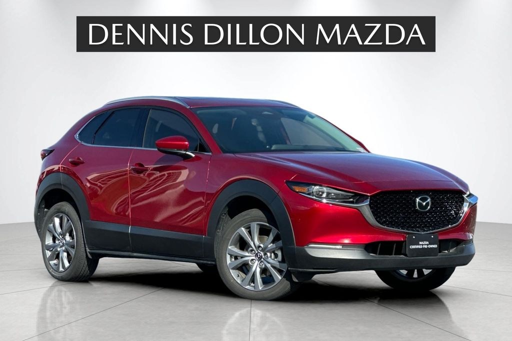Certified. Soul Red Crystal Metallic 2025 Mazda CX-30 2.5 S Premium Package AWD 6-Speed Automatic SKYACTIV® 2.5L 4-Cylinder DOHC 16V ///MAZDA CERTIFIED///, 12 Speakers, 4-Wheel Disc Brakes, ABS brakes, Air Conditioning, Alloy wheels, AM/FM radio: SiriusXM, AppLink/Apple CarPlay and Android Auto, Auto High-beam Headlights, Automatic temperature control, Brake assist, Bumpers: body-color, Cargo Cover, Compass, Delay-off headlights, Driver door bin, Driver vanity mirror, Dual front impact airbags, Dual front side impact airbags, Electronic Stability Control, Emergency communication system: Mazda Connected Services (3-year trial subscription included), Exterior Parking Camera Rear, Front anti-roll bar, Front Bucket Seats, Front Center Armrest, Front dual zone A/C, Front reading lights, Front wheel independent suspension, Fully automatic headlights, Heads-Up Display, Heated door mirrors, Heated Front Bucket Seats, Heated front seats, Illuminated entry, Knee airbag, Leather Seat Trim, Leather Shift Knob, Leather steering wheel, Low tire pressure warning, MAZDA CONNECT Infotainment System, Memory seat, Navigation system: MAZDA CONNECT, Occupant sensing airbag, Outside temperature display, Overhead airbag, Overhead console, Panic alarm, Passenger door bin, Passenger vanity mirror, Power door mirrors, Power driver seat, Power Liftgate, Power moonroof, Power steering, Power windows, Radio data system, Radio: AM/FM/HD Audio w/Mazda Online Navigation, Rain sensing wipers, Rear seat center armrest, Rear side impact airbag, Rear window defroster, Rear window wiper, Remote keyless entry, Soul Red Crystal Metallic Paint Charge, Speed control, Speed-sensing steering, Split folding rear seat, Spoiler, Steering wheel mounted audio controls, Tachometer, Telescoping steering wheel, Tilt steering wheel, Traction control, Trip computer, Turn signal indicator mirrors, Variably intermittent wipers, Wheel Locks, Wheels: 18" x 7J Aluminum Alloy.