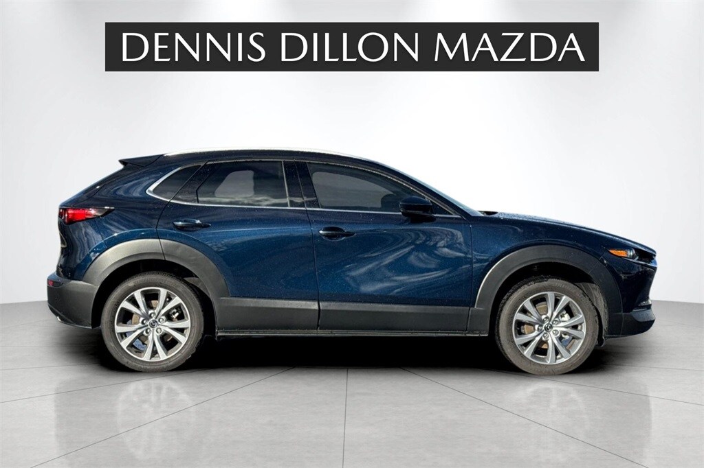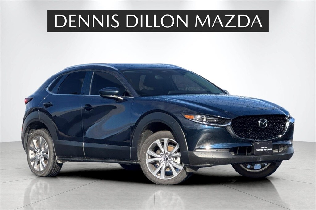 Certified. Deep Crystal Blue Mica 2025 Mazda CX-30 2.5 S Premium Package AWD 6-Speed Automatic SKYACTIV® 2.5L 4-Cylinder DOHC 16V ///MAZDA CERTIFIED///, 12 Speakers, 4-Wheel Disc Brakes, ABS brakes, Air Conditioning, Alloy wheels, AM/FM radio: SiriusXM, AppLink/Apple CarPlay and Android Auto, Auto High-beam Headlights, Automatic temperature control, Brake assist, Bumpers: body-color, Cargo Cover, Cargo Net, Compass, Delay-off headlights, Driver door bin, Driver vanity mirror, Dual front impact airbags, Dual front side impact airbags, Electronic Stability Control, Emergency communication system: Mazda Connected Services (3-year trial subscription included), Exterior Parking Camera Rear, Front anti-roll bar, Front Bucket Seats, Front Center Armrest, Front dual zone A/C, Front reading lights, Front wheel independent suspension, Fully automatic headlights, Heads-Up Display, Heated door mirrors, Heated Front Bucket Seats, Heated front seats, Illuminated entry, Knee airbag, Leather Seat Trim, Leather Shift Knob, Leather steering wheel, Low tire pressure warning, MAZDA CONNECT Infotainment System, Memory seat, Navigation system: MAZDA CONNECT, Occupant sensing airbag, Outside temperature display, Overhead airbag, Overhead console, Panic alarm, Passenger door bin, Passenger vanity mirror, Power door mirrors, Power driver seat, Power Liftgate, Power moonroof, Power steering, Power windows, Radio data system, Radio: AM/FM/HD Audio w/Mazda Online Navigation, Rain sensing wipers, Rear seat center armrest, Rear side impact airbag, Rear window defroster, Rear window wiper, Remote keyless entry, Speed control, Speed-sensing steering, Split folding rear seat, Spoiler, Steering wheel mounted audio controls, Tachometer, Telescoping steering wheel, Tilt steering wheel, Traction control, Trip computer, Turn signal indicator mirrors, Variably intermittent wipers, Wheel Locks, Wheels: 18" x 7J Aluminum Alloy.