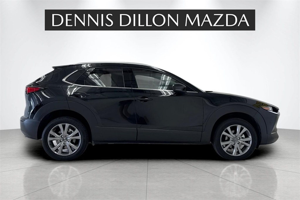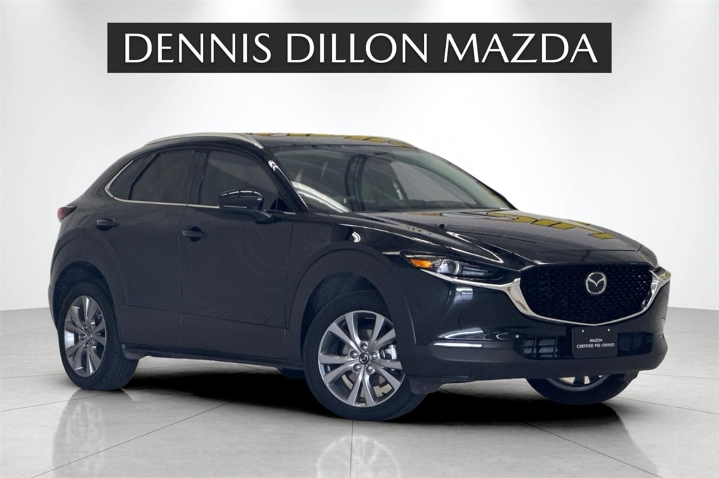 Clean CARFAX. Certified. Jet Black Mica 2025 Mazda CX-30 2.5 S Premium Package AWD 6-Speed Automatic SKYACTIV® 2.5L 4-Cylinder DOHC 16V ///MAZDA CERTIFIED///, 12 Speakers, 4-Wheel Disc Brakes, ABS brakes, Air Conditioning, Alloy wheels, AM/FM radio: SiriusXM, AppLink/Apple CarPlay and Android Auto, Auto High-beam Headlights, Automatic temperature control, Brake assist, Bumpers: body-color, Cargo Tray, Compass, Delay-off headlights, Driver door bin, Driver vanity mirror, Dual front impact airbags, Dual front side impact airbags, Electronic Stability Control, Emergency communication system: Mazda Connected Services (3-year trial subscription included), Exterior Parking Camera Rear, Front anti-roll bar, Front Bucket Seats, Front Center Armrest, Front dual zone A/C, Front reading lights, Front wheel independent suspension, Fully automatic headlights, Heads-Up Display, Heated door mirrors, Heated Front Bucket Seats, Heated front seats, High Wall All-Weather Floor Mats, Illuminated entry, Knee airbag, Leather Seat Trim, Leather Shift Knob, Leather steering wheel, Low tire pressure warning, MAZDA CONNECT Infotainment System, Memory seat, Navigation system: MAZDA CONNECT, Occupant sensing airbag, Outside temperature display, Overhead airbag, Overhead console, Panic alarm, Passenger door bin, Passenger vanity mirror, Power door mirrors, Power driver seat, Power Liftgate, Power moonroof, Power steering, Power windows, Radio data system, Radio: AM/FM/HD Audio w/Mazda Online Navigation, Rain sensing wipers, Rear seat center armrest, Rear side impact airbag, Rear window defroster, Rear window wiper, Remote keyless entry, Speed control, Speed-sensing steering, Split folding rear seat, Spoiler, Steering wheel mounted audio controls, Tachometer, Telescoping steering wheel, Tilt steering wheel, Traction control, Trip computer, Turn signal indicator mirrors, Variably intermittent wipers, Wheels: 18" x 7J Aluminum Alloy.