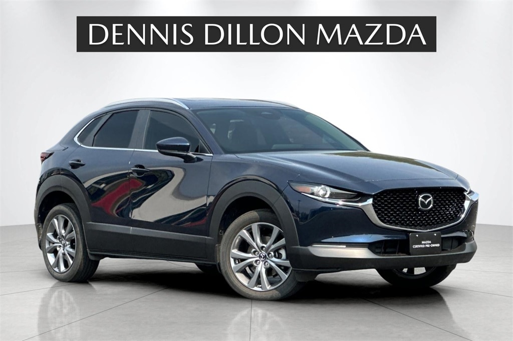 Clean CARFAX. Certified. Deep Crystal Blue Mica 2025 Mazda CX-30 2.5 S Preferred Package AWD 6-Speed Automatic SKYACTIV® 2.5L 4-Cylinder DOHC 16V ///MAZDA CERTIFIED///, 4-Wheel Disc Brakes, 6 Speakers, ABS brakes, Air Conditioning, Alloy wheels, AM/FM radio, AppLink/Apple CarPlay and Android Auto, Auto High-beam Headlights, Automatic temperature control, Brake assist, Bumpers: body-color, Compass, Delay-off headlights, Driver door bin, Driver vanity mirror, Dual front impact airbags, Dual front side impact airbags, Electronic Stability Control, Emergency communication system: Mazda Connected Services (3-year trial subscription included), Exterior Parking Camera Rear, Front & Rear Splash Guards, Front anti-roll bar, Front Bucket Seats, Front Center Armrest, Front dual zone A/C, Front reading lights, Front wheel independent suspension, Fully automatic headlights, Heated door mirrors, Heated Front Bucket Seats, Heated front seats, Illuminated entry, Knee airbag, Leather Shift Knob, Leather steering wheel, Leatherette Seat Trim, Low tire pressure warning, MAZDA CONNECT Infotainment System, Memory seat, Occupant sensing airbag, Outside temperature display, Overhead airbag, Overhead console, Panic alarm, Passenger door bin, Passenger vanity mirror, Power door mirrors, Power driver seat, Power moonroof, Power steering, Power windows, Radio data system, Radio: AM/FM Audio System, Rain sensing wipers, Rear seat center armrest, Rear side impact airbag, Rear window defroster, Rear window wiper, Remote keyless entry, Speed control, Speed-sensing steering, Split folding rear seat, Spoiler, Steering wheel mounted audio controls, Tachometer, Telescoping steering wheel, Tilt steering wheel, Traction control, Trip computer, Turn signal indicator mirrors, Variably intermittent wipers, Wheels: 18" x 7J Aluminum Alloy.