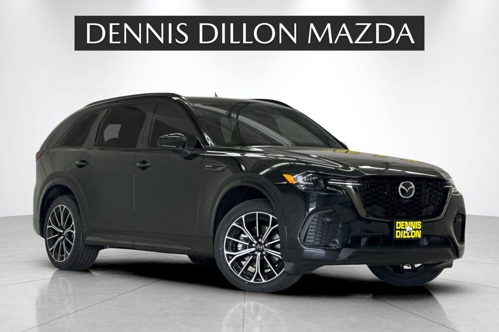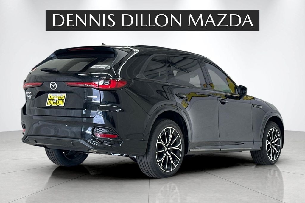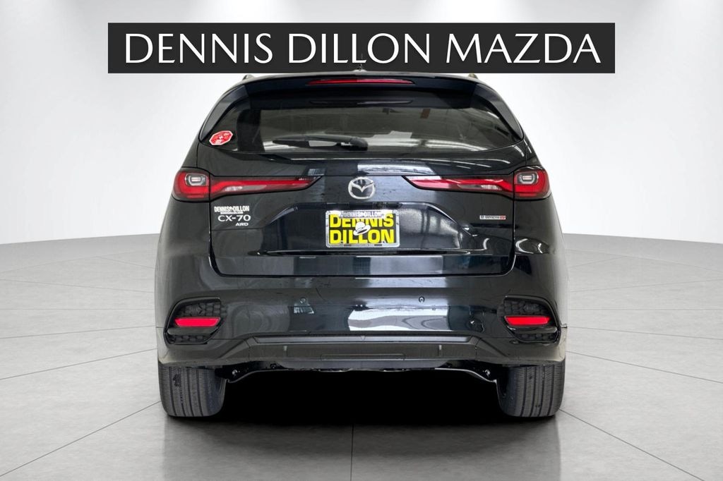 Jet Black Mica 2025 Mazda CX-70 3.3 Turbo S Premium Plus AWD 8-Speed Automatic I6 Turbo 12 Speakers, 4-Wheel Disc Brakes, ABS brakes, Air Conditioning, Alloy wheels, AM/FM radio: SiriusXM, Auto High-beam Headlights, Auto-dimming door mirrors, Auto-dimming Rear-View mirror, Automatic temperature control, Brake assist, Bumpers: body-color, Cargo Blocks, Compass, Delay-off headlights, Driver door bin, Driver vanity mirror, Dual front impact airbags, Dual front side impact airbags, E911 Automatic Emergency Notification, Electronic Stability Control, Emergency communication system: MAZDA CONNECT, Four wheel independent suspension, Front anti-roll bar, Front Bucket Seats, Front Center Armrest w/Storage, Front dual zone A/C, Front reading lights, Fully automatic headlights, Garage door transmitter: HomeLink, Heads-Up Display, Heated door mirrors, Heated front seats, Heated rear seats, Heated steering wheel, Heated/Ventilated Front Bucket Seats, Illuminated entry, Infotainment System Voice Command, Knee airbag, Leather Shift Knob, Leather steering wheel, Low tire pressure warning, Mazda Connected Services, Mazda Online Navigation, Memory seat, Nappa Leather Seat Trim w/Quilting, Navigation system: MAZDA CONNECT, Occupant sensing airbag, Outside temperature display, Overhead airbag, Overhead console, Pandora Internet Radio Integration, Panic alarm, Passenger door bin, Passenger vanity mirror, Power door mirrors, Power driver seat, Power Liftgate, Power moonroof, Power passenger seat, Power steering, Power windows, Radio Broadcast Data System Program Information, Radio data system, Radio: AM/FM w/Bose Premium Audio Sound System, Rain sensing wipers, Rear air conditioning, Rear anti-roll bar, Rear reading lights, Rear seat center armrest, Rear window defroster, Rear window wiper, Remote keyless entry, Security system, SMS Text Msg Audio Delivery & Reply, Speed control, Speed-sensing steering, Split folding rear seat, Spoiler, Steering wheel memory, Steering wheel mounted audio controls, Tachometer, Telescoping steering wheel, Tilt steering wheel, Traction control, Trip computer, Turn signal indicator mirrors, Variably intermittent wipers, Ventilated front seats, Wheels: 21 x 9.5J Aluminum Alloy.