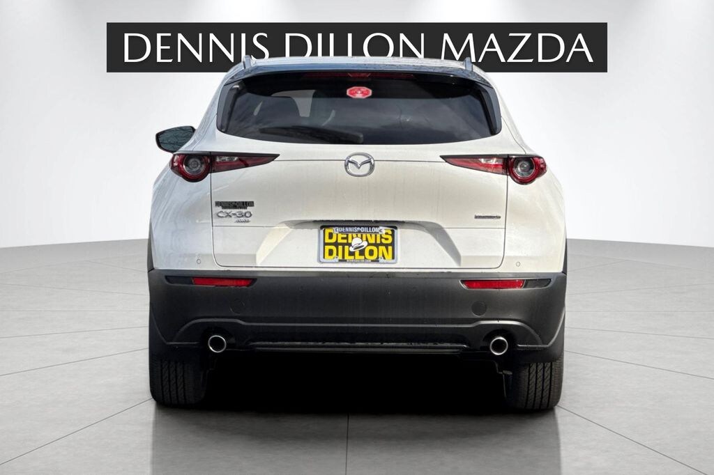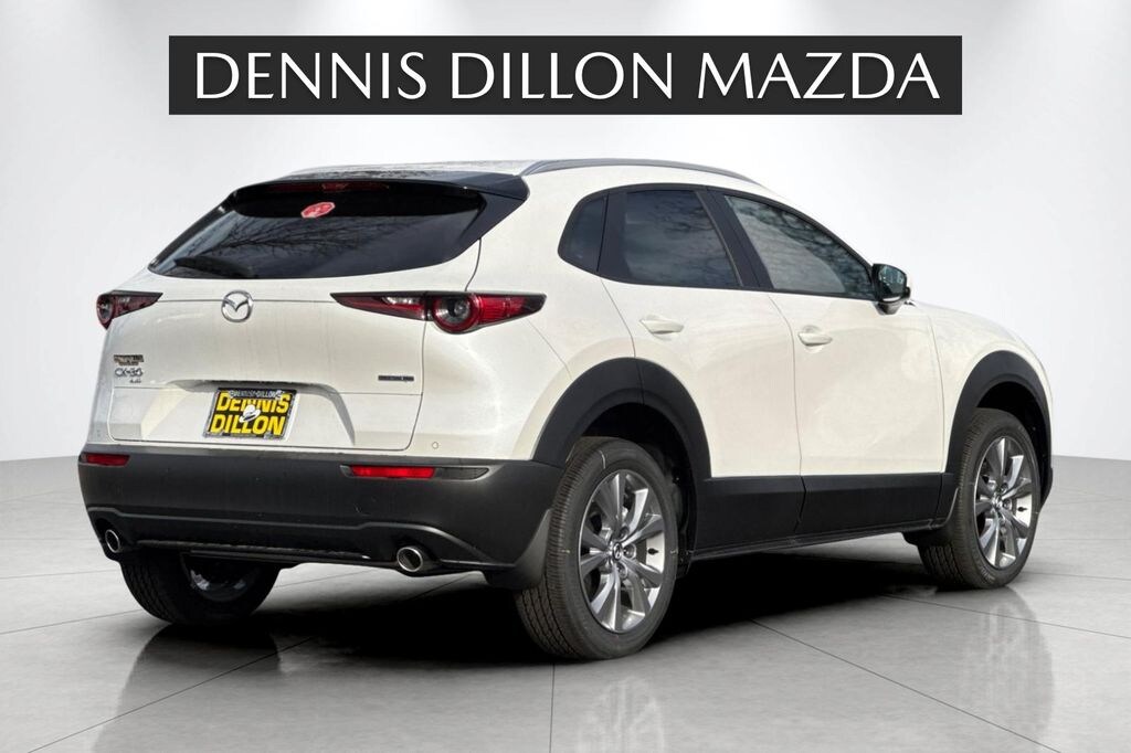 Snowflake White Pearl Mica 2026 Mazda CX-30 2.5 S Premium AWD 6-Speed Automatic SKYACTIV® 2.5L 4-Cylinder DOHC 16V 12 Speakers, 4-Wheel Disc Brakes, ABS brakes, Air Conditioning, Alloy wheels, AM/FM radio, AppLink/Apple CarPlay and Android Auto, Auto High-beam Headlights, Auto-dimming Rear-View mirror, Automatic temperature control, Black Lug Nuts & Black Wheel Locks, Brake assist, Bumpers: body-color, Cargo Cover, Cargo Tray, Compass, Delay-off headlights, Driver door bin, Driver vanity mirror, Dual front impact airbags, Dual front side impact airbags, Electronic Stability Control, Emergency communication system: MAZDA CONNECT, Exterior Parking Camera Rear, Front & Rear Splash Guards, Front anti-roll bar, Front Bucket Seats, Front Center Armrest, Front dual zone A/C, Front Illuminated Door Sill Trim Plates, Front reading lights, Front wheel independent suspension, Fully automatic headlights, Garage door transmitter: HomeLink, Heads-Up Display, Heated door mirrors, Heated Front Bucket Seats, Heated front seats, Heated steering wheel, High Wall All-Weather Floor Mats, Illuminated entry, Knee airbag, Leather Seat Trim, Leather Shift Knob, Leather steering wheel, Low tire pressure warning, MAZDA CONNECT Infotainment System, Memory seat, Occupant sensing airbag, Outside temperature display, Overhead airbag, Overhead console, Panic alarm, Passenger door bin, Passenger vanity mirror, Power door mirrors, Power driver seat, Power Liftgate, Power moonroof, Power steering, Power windows, Radio data system, Radio: AM/FM/HD Audio System, Rain sensing wipers, Rear seat center armrest, Rear side impact airbag, Rear window defroster, Rear window wiper, Remote keyless entry, Snowflake White Pearl Mica Paint Charge, Speed control, Speed-sensing steering, Split folding rear seat, Spoiler, Steering wheel mounted audio controls, Tachometer, Telescoping steering wheel, Tilt steering wheel, Traction control, Trip computer, Turn signal indicator mirrors, Variably intermittent wipers, Wheels: 18 x 7J Aluminum Alloy.