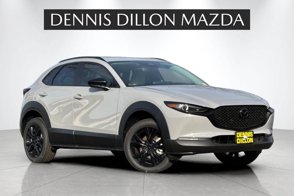 Aero Gray Metallic 2026 Mazda CX-30 2.5 S Aire Edition AWD 6-Speed Automatic SKYACTIV® 2.5L 4-Cylinder DOHC 16V 4-Wheel Disc Brakes, 8 Speakers, ABS brakes, Aero Gray Paint Charge, Air Conditioning, Alloy wheels, AM/FM radio, AppLink/Apple CarPlay and Android Auto, Auto High-beam Headlights, Automatic temperature control, Black Lug Nuts & Black Wheel Locks, Brake assist, Bumpers: body-color, Cargo Tray, Compass, Delay-off headlights, Driver door bin, Driver vanity mirror, Dual front impact airbags, Dual front side impact airbags, Electronic Stability Control, Emergency communication system: MAZDA CONNECT, Exterior Parking Camera Rear, Front anti-roll bar, Front Bucket Seats, Front Center Armrest, Front dual zone A/C, Front reading lights, Front wheel independent suspension, Fully automatic headlights, Heated door mirrors, Heated Front Bucket Seats, Heated front seats, High Wall All-Weather Floor Mats, Illuminated entry, Knee airbag, Leather Shift Knob, Leather steering wheel, Leatherette Seat Trim w/Gray Cloth Inserts, Low tire pressure warning, MAZDA CONNECT Infotainment System, Memory seat, Occupant sensing airbag, Outside temperature display, Overhead airbag, Overhead console, Panic alarm, Passenger door bin, Passenger vanity mirror, Power door mirrors, Power driver seat, Power moonroof, Power steering, Power windows, Radio data system, Radio: AM/FM Audio System, Rain sensing wipers, Rear seat center armrest, Rear side impact airbag, Rear window defroster, Rear window wiper, Remote keyless entry, Speed control, Speed-sensing steering, Split folding rear seat, Spoiler, Steering wheel mounted audio controls, Tachometer, Telescoping steering wheel, Tilt steering wheel, Traction control, Trip computer, Turn signal indicator mirrors, Variably intermittent wipers, Wheels: 18 x 7J Aluminum Alloy.
