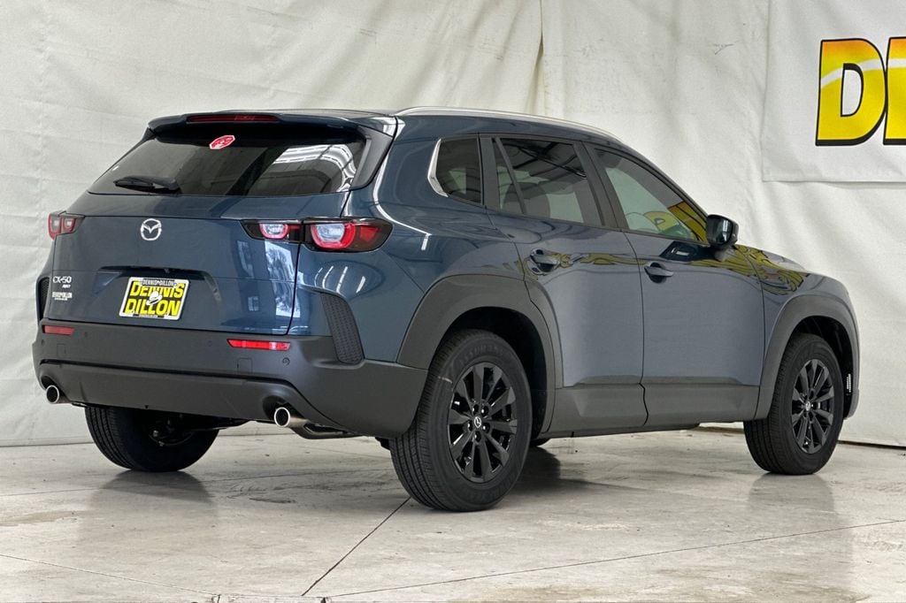Ingot Blue Metallic 2026 Mazda CX-50 2.5 S Preferred AWD 6-Speed Automatic SKYACTIV®-G 2.5L 4-Cylinder DOHC 16V 4-Wheel Disc Brakes, 8 Speakers, ABS brakes, Air Conditioning, Alloy wheels, AM/FM radio, AppLink/Apple CarPlay and Android Auto, Auto High-beam Headlights, Automatic temperature control, Brake assist, Bumpers: body-color, Cargo Liner w/Seatback Protection, Delay-off headlights, Driver door bin, Driver vanity mirror, Dual front impact airbags, Dual front side impact airbags, Electronic Stability Control, Emergency communication system: MAZDA CONNECT, Exterior Parking Camera Rear, Front anti-roll bar, Front Bucket Seats, Front Center Armrest, Front dual zone A/C, Front reading lights, Front wheel independent suspension, Fully automatic headlights, Half Leatherette Seat Trim, Heated door mirrors, Heated front seats, Heated Front Seats w/3 Level Adjustment, Illuminated entry, Knee airbag, Leather Shift Knob, Leather steering wheel, Low tire pressure warning, Occupant sensing airbag, Outside temperature display, Overhead airbag, Overhead console, Panic alarm, Passenger door bin, Passenger vanity mirror, Power door mirrors, Power driver seat, Power Liftgate, Power moonroof, Power steering, Power windows, Radio data system, Radio: AM/FM/HD 8-Speaker Audio Sound System, Rain sensing wipers, Rear seat center armrest, Rear window defroster, Rear window wiper, Remote keyless entry, Speed control, Speed-sensing steering, Split folding rear seat, Spoiler, Steering wheel mounted audio controls, Tachometer, Telescoping steering wheel, Tilt steering wheel, Traction control, Trip computer, Turn signal indicator mirrors, Variably intermittent wipers, Weather Package, Wheels: 17 x 7J Aluminum Alloy Black Metallic Finish.