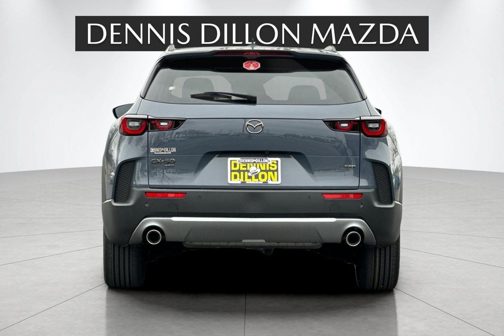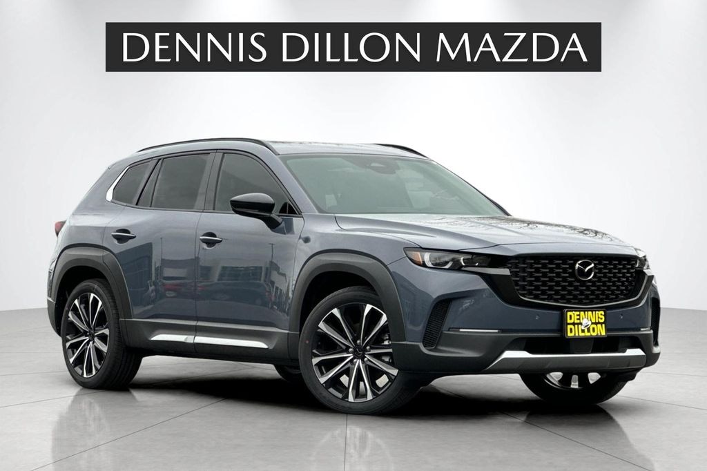 Polymetal Gray Metallic 2026 Mazda CX-50 2.5 Turbo AWD 6-Speed Automatic 2.5L I4 Turbocharged DOHC 16V LEV3-ULEV70 227hp 12 Speakers, 4-Wheel Disc Brakes, ABS brakes, Accent Package, Air Conditioning, Alloy wheels, AM/FM radio: SiriusXM, AppLink/Apple CarPlay and Android Auto, Auto High-beam Headlights, Auto-dimming Rear-View mirror, Automatic temperature control, Brake assist, Bumpers: body-color, Cargo Package, Carpet Cargo Mat, Delay-off headlights, Driver door bin, Driver vanity mirror, Dual front impact airbags, Dual front side impact airbags, Electronic Stability Control, Emergency communication system: MAZDA CONNECT, Exterior Parking Camera Rear, Front anti-roll bar, Front Bucket Seats, Front Center Armrest, Front dual zone A/C, Front reading lights, Front wheel independent suspension, Fully automatic headlights, Garage door transmitter: HomeLink, Heads-Up Display, Heated and Ventilated Front Seats with 3 Level Adjustment, Heated door mirrors, Heated front seats, Illuminated entry, Knee airbag, Leather Seat Trim, Leather Shift Knob, Leather steering wheel, Low tire pressure warning, Memory seat, Occupant sensing airbag, Outside temperature display, Overhead airbag, Overhead console, Panic alarm, Passenger door bin, Passenger vanity mirror, Polymetal Gray Metallic Paint Charge, Power door mirrors, Power driver seat, Power Liftgate, Power moonroof, Power passenger seat, Power steering, Power windows, Radio data system, Radio: AM/FM/HD Bose 12-Speaker Audio Sound System, Rain sensing wipers, Rear seat center armrest, Rear window defroster, Rear window wiper, Remote keyless entry, Speed control, Speed-sensing steering, Split folding rear seat, Spoiler, Steering wheel mounted audio controls, Tachometer, Telescoping steering wheel, Tilt steering wheel, Traction control, Trip computer, Turn signal indicator mirrors, Variably intermittent wipers, Ventilated front seats, Wheels: 20 x 8J Aluminum Alloy Black Metallic with Machining Cut.