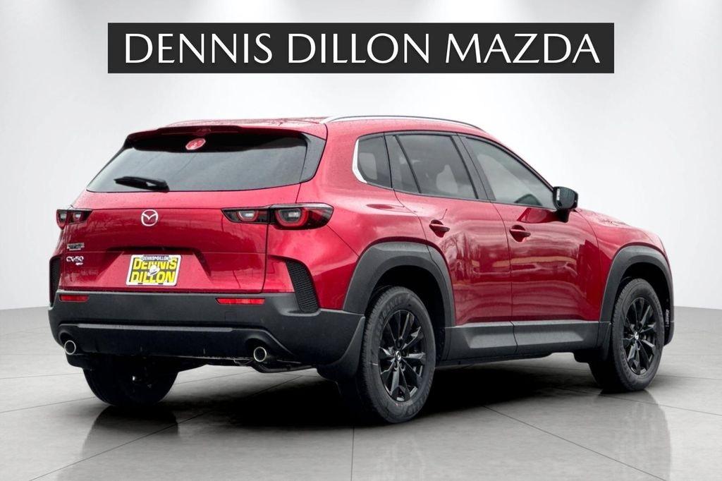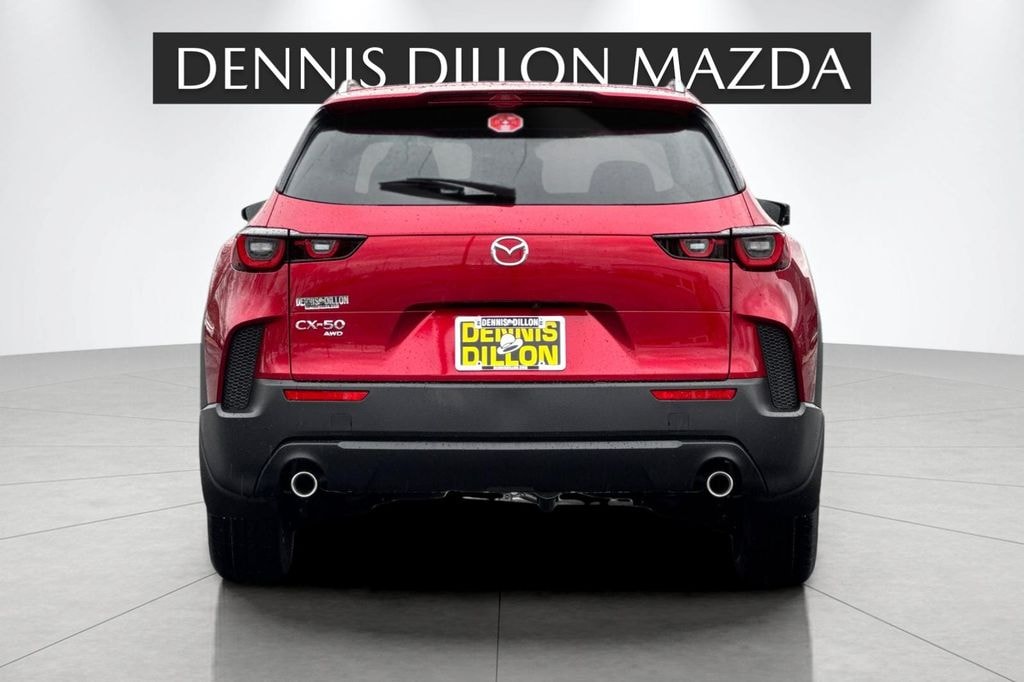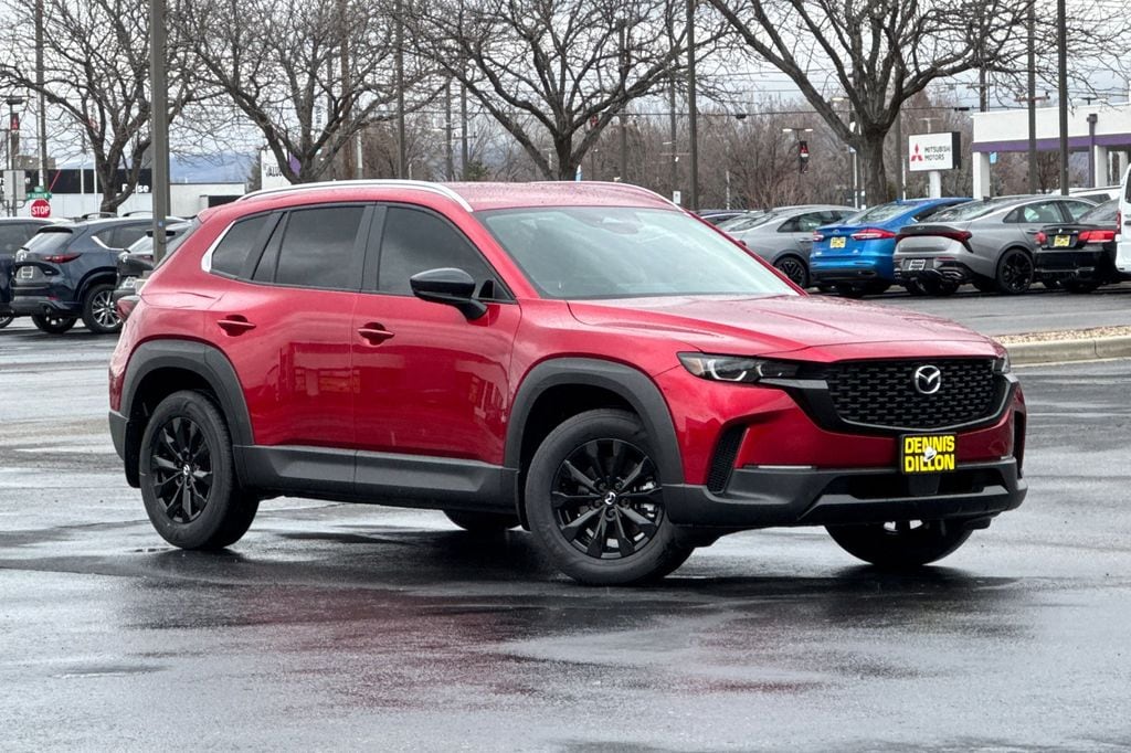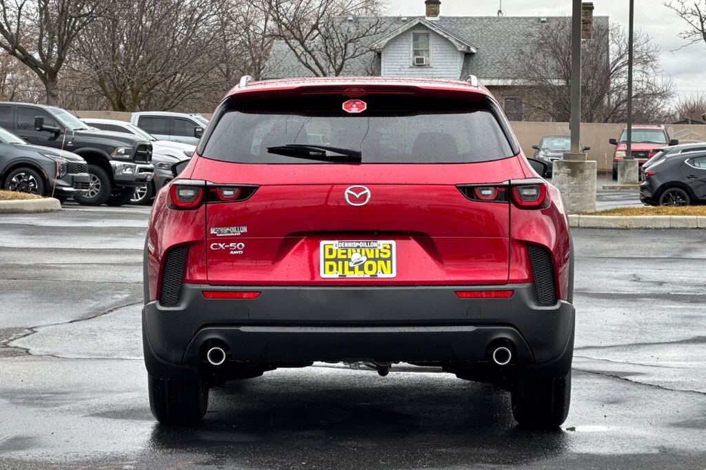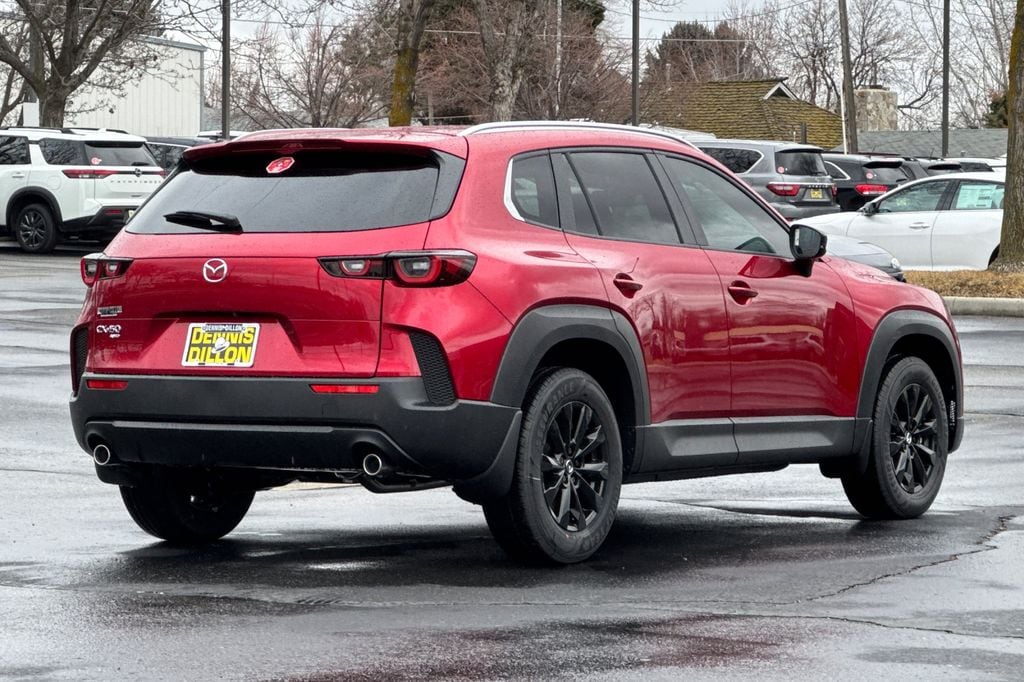 Soul Red Crystal Metallic 2026 Mazda CX-50 2.5 S Select AWD 6-Speed Automatic SKYACTIV®-G 2.5L 4-Cylinder DOHC 16V 4-Wheel Disc Brakes, 8 Speakers, ABS brakes, Air Conditioning, Alloy wheels, AM/FM radio, AppLink/Apple CarPlay and Android Auto, Auto High-beam Headlights, Automatic temperature control, Black Lug Nuts and Black Wheel Locks, Brake assist, Bumpers: body-color, Delay-off headlights, Driver door bin, Driver vanity mirror, Dual front impact airbags, Dual front side impact airbags, Electronic Stability Control, Emergency communication system: MAZDA CONNECT, Exterior Parking Camera Rear, Front and Rear Splash Guards, Front anti-roll bar, Front Bucket Seats, Front Center Armrest, Front dual zone A/C, Front reading lights, Front wheel independent suspension, Fully automatic headlights, Half Leatherette Seat Trim, Illuminated entry, Knee airbag, Leather Shift Knob, Leather steering wheel, Low tire pressure warning, Occupant sensing airbag, Outside temperature display, Overhead airbag, Overhead console, Panic alarm, Passenger door bin, Passenger vanity mirror, Power door mirrors, Power steering, Power windows, Radio data system, Radio: AM/FM/HD 8-Speaker Audio Sound System, Rain sensing wipers, Rear seat center armrest, Rear window defroster, Rear window wiper, Remote keyless entry, Soul Red Crystal Metallic Paint Charge, Speed control, Speed-sensing steering, Split folding rear seat, Spoiler, Steering wheel mounted audio controls, Tachometer, Telescoping steering wheel, Tilt steering wheel, Traction control, Trip computer, Turn signal indicator mirrors, Variably intermittent wipers, Weather Package, Wheels: 17 x 7J Aluminum Alloy Black Metallic Finish.