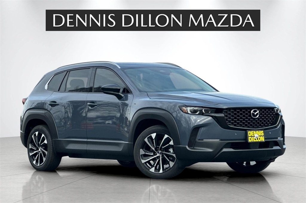 polymetal gray metallic 2026 Mazda CX-50 Hybrid Premium Plus AWD CVT 2.5L 4-Cylinder 12 Speakers, 4-Wheel Disc Brakes, ABS brakes, Air Conditioning, Alloy wheels, AM/FM radio: SiriusXM, AppLink/Apple CarPlay and Android Auto, Auto High-beam Headlights, Auto-dimming Rear-View mirror, Automatic temperature control, Black Lug Nuts and Black Wheel Locks, Brake assist, Bumpers: body-color, Cargo Package, Carpet Cargo Mat, Delay-off headlights, Driver door bin, Driver vanity mirror, Dual front impact airbags, Dual front side impact airbags, Electronic Stability Control, Emergency communication system: MAZDA CONNECT, Exterior Parking Camera Rear, Front anti-roll bar, Front Bucket Seats, Front Center Armrest, Front dual zone A/C, Front reading lights, Front wheel independent suspension, Fully automatic headlights, Garage door transmitter: HomeLink, Heads-Up Display, Heated and Ventilated Front Seats with 3 Level Adjustment, Heated door mirrors, Heated front seats, Heated rear seats, Heated steering wheel, Illuminated entry, Knee airbag, Leather Seat Trim, Leather Shift Knob, Leather steering wheel, Low tire pressure warning, Memory seat, Occupant sensing airbag, Outside temperature display, Overhead airbag, Overhead console, Panic alarm, Passenger door bin, Passenger vanity mirror, Polymetal Gray Metallic Paint Charge, Power door mirrors, Power driver seat, Power Liftgate, Power moonroof, Power passenger seat, Power steering, Power windows, Radio data system, Radio: AM/FM/HD Bose 12-Speaker Audio Sound System, Rain sensing wipers, Rear seat center armrest, Rear window defroster, Rear window wiper, Remote keyless entry, Speed control, Speed-sensing steering, Split folding rear seat, Spoiler, Steering wheel mounted audio controls, Tachometer, Telescoping steering wheel, Tilt steering wheel, Traction control, Trip computer, Turn signal indicator mirrors, Variably intermittent wipers, Ventilated front seats, Wheels: 19 x 7.5J Aluminum Alloy Black Metallic with Machine Cut.