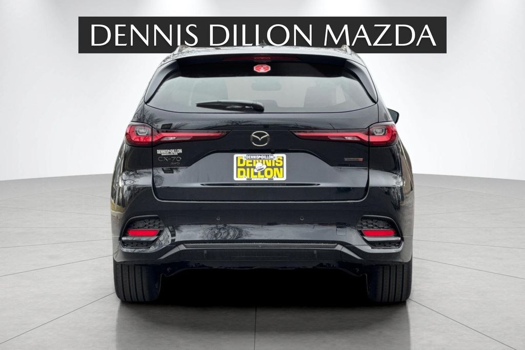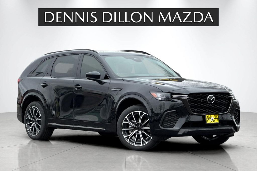 Jet Black Mica 2026 Mazda CX-70 3.3 Turbo S Premium Plus AWD 8-Speed Automatic I6 Turbo 12 Speakers, 4-Wheel Disc Brakes, ABS brakes, Air Conditioning, Alloy wheels, AM/FM radio: SiriusXM, Auto High-beam Headlights, Auto-dimming door mirrors, Auto-dimming Rear-View mirror, Automatic temperature control, Black Lug Nuts and Black Wheel Locks, Brake assist, Bumpers: body-color, Cargo Net, Compass, Delay-off headlights, Driver door bin, Driver vanity mirror, Dual front impact airbags, Dual front side impact airbags, E911 Automatic Emergency Notification, Electronic Stability Control, Emergency communication system: MAZDA CONNECT, Four wheel independent suspension, Front anti-roll bar, Front Bucket Seats, Front Center Armrest w/Storage, Front dual zone A/C, Front reading lights, Fully automatic headlights, Garage door transmitter: HomeLink, Heads-Up Display, Heated door mirrors, Heated front seats, Heated rear seats, Heated steering wheel, Heated/Ventilated Front Bucket Seats, Illuminated entry, Infotainment System Voice Command, Knee airbag, Leather Shift Knob, Leather steering wheel, Low tire pressure warning, Mazda Connected Services, Mazda Online Navigation, Memory seat, Nappa Leather Seat Trim with Quilting, Navigation system: MAZDA CONNECT, Occupant sensing airbag, Outside temperature display, Overhead airbag, Overhead console, Panic alarm, Passenger door bin, Passenger vanity mirror, Power door mirrors, Power driver seat, Power Liftgate, Power moonroof, Power passenger seat, Power steering, Power windows, Premium Carpet Floor Mats, Radio Broadcast Data System Program Information, Radio data system, Radio: AM/FM with Bose Premium Audio Sound System, Rain sensing wipers, Rear air conditioning, Rear anti-roll bar, Rear reading lights, Rear seat center armrest, Rear window defroster, Rear window wiper, Remote keyless entry, Security system, SMS Text Message Audio Delivery and Reply, Speed control, Speed-sensing steering, Split folding rear seat, Spoiler, Steering wheel memory, Steering wheel mounted audio controls, Tachometer, Telescoping steering wheel, Tilt steering wheel, Traction control, Trip computer, Turn signal indicator mirrors, Variably intermittent wipers, Ventilated front seats, Wheels: 21 x 9.5J Aluminum Alloy.