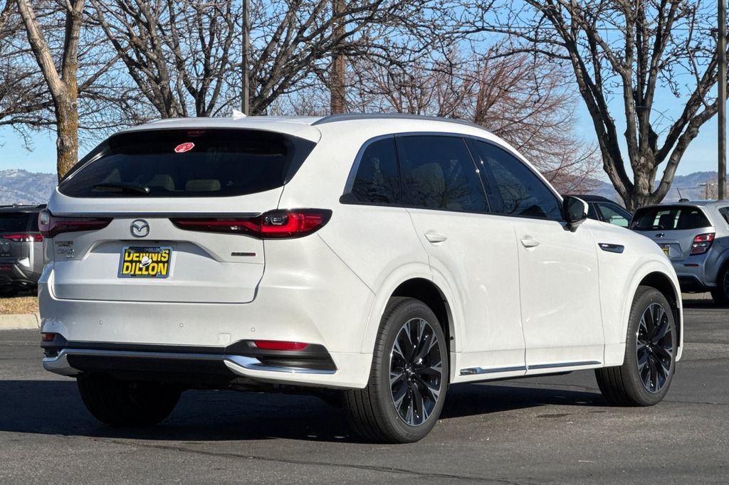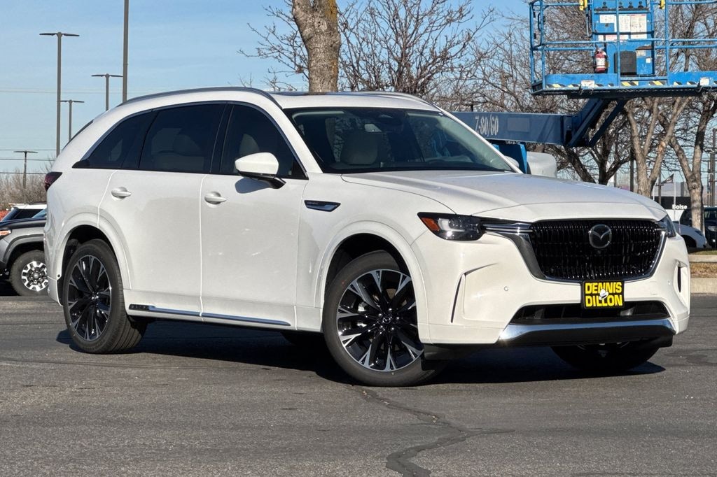 Rhodium White Premium 2026 Mazda CX-90 3.3 Turbo S Premium Plus AWD 8-Speed Automatic I6 Turbo 12 Speakers, 3rd row seats: bench, 4-Wheel Disc Brakes, ABS brakes, Air Conditioning, All Weather Floor Mats - Captains Chairs, Alloy wheels, AM/FM radio: SiriusXM, Auto High-beam Headlights, Auto-dimming door mirrors, Auto-dimming Rear-View mirror, Automatic temperature control, Brake assist, Bumpers: body-color, Compass, Delay-off headlights, Driver door bin, Driver vanity mirror, Dual front impact airbags, Dual front side impact airbags, E911 Automatic Emergency Notification, Electronic Stability Control, Emergency communication system: MAZDA CONNECT, Four wheel independent suspension, Front anti-roll bar, Front Bucket Seats, Front Center Armrest w/Storage, Front dual zone A/C, Front reading lights, Fully automatic headlights, Garage door transmitter: HomeLink, Heads-Up Display, Heated door mirrors, Heated front seats, Heated rear seats, Heated steering wheel, Heated/Ventilated Front Bucket Seats, Illuminated entry, Infotainment System Voice Command, Knee airbag, Leather Shift Knob, Leather steering wheel, Low tire pressure warning, Mazda Connected Services, Mazda Online Navigation, Memory seat, Nappa Leather Seat Trim, Navigation system: MAZDA CONNECT, Occupant sensing airbag, Outside temperature display, Overhead airbag, Overhead console, Panic alarm, Passenger door bin, Passenger vanity mirror, Power door mirrors, Power driver seat, Power Liftgate, Power moonroof, Power passenger seat, Power steering, Power windows, Radio Broadcast Data System Program Information, Radio data system, Radio: : AM/FM w/HD/Bose 12-Speaker Sound System, Rain sensing wipers, Rear air conditioning, Rear anti-roll bar, Rear reading lights, Rear seat center armrest, Rear window defroster, Rear window wiper, Remote keyless entry, Rhodium White Premium Paint Charge, Security system, SMS Text Msg Audio Delivery and Reply, Speed control, Speed-sensing steering, Split folding rear seat, Spoiler, Steering wheel memory, Steering wheel mounted audio controls, Tachometer, Telescoping steering wheel, Tilt steering wheel, Traction control, Trip computer, Turn signal indicator mirrors, Variably intermittent wipers, Ventilated front seats, Ventilated rear seats, Wheels: 21 x 9.5j Machine Cut Aluminum Alloy.