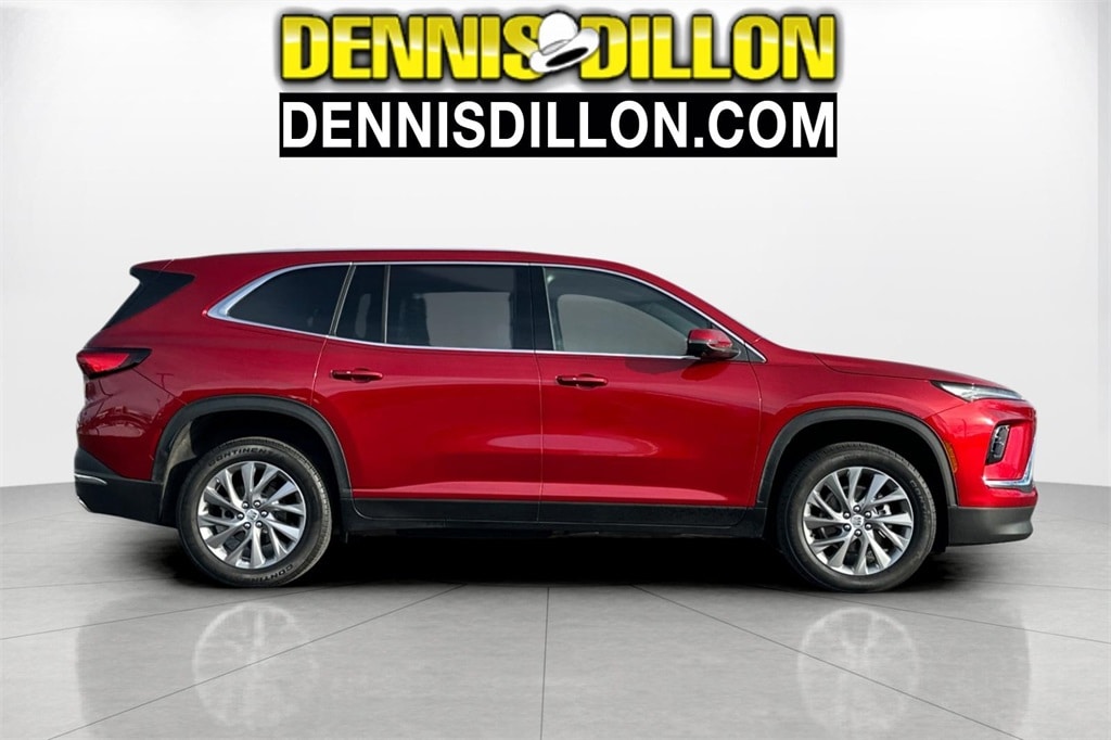 CARFAX One-Owner. Clean CARFAX. Cherry Red Tintcoat 2025 Buick Enclave Preferred FWD 8-Speed Automatic 2.5L DOHC 12 Speakers, 3rd row seats: split-bench, 4-Wheel Disc Brakes, ABS brakes, Air Conditioning, Alloy wheels, AM/FM radio: SiriusXM with 360L, Auto High-beam Headlights, Auto-dimming door mirrors, Auto-dimming Rear-View mirror, Automatic temperature control, Bose Premium 12-Speaker Audio System, Brake assist, Bumpers: body-color, Compass, Delay-off headlights, Driver 4-Way Power Lumbar Seat Adjuster, Driver 8-Way Power Seat Adjuster, Driver door bin, Driver vanity mirror, Dual front impact airbags, Dual front side impact airbags, Electronic Stability Control, Emergency communication system: OnStar and Buick connected services capable, Four wheel independent suspension, Front anti-roll bar, Front Bucket Seats, Front Center Armrest, Front dual zone A/C, Front Mounting License Plate Bracket Package, Front Passenger 4-Way Power Lumbar Seat Adjuster, Front Passenger 6-Way Power Seat Adjuster, Front reading lights, Fully automatic headlights, Heated door mirrors, Heated Driver and Front Passenger Seats, Heated front seats, Heated steering wheel, Illuminated entry, Leather steering wheel, Leatherette Seat Trim, Low tire pressure warning, Navigation System, Occupant sensing airbag, Outside temperature display, Overhead airbag, Overhead console, Panic alarm, Passenger door bin, Passenger vanity mirror, Power door mirrors, Power driver seat, Power Liftgate, Power passenger seat, Power steering, Power windows, Preferred Equipment Group 1SD, Premium audio system: Buick Infotainment System, Radio data system, Radio: Infotainment Center, Rear air conditioning, Rear anti-roll bar, Rear reading lights, Rear side impact airbag, Rear window defroster, Rear window wiper, Remote keyless entry, Security system, SiriusXM with 360L Trial Subscription, Speed control, Speed-sensing steering, Spoiler, Steering wheel mounted audio controls, Tachometer, Telescoping steering wheel, Tilt steering wheel, Traction control, Trip computer, Turn signal indicator mirrors, Variably intermittent wipers, Voltmeter, Wheels: 20" Alloy with Medium Android Finish, Wireless Apple CarPlay, Wireless Google Android Auto.