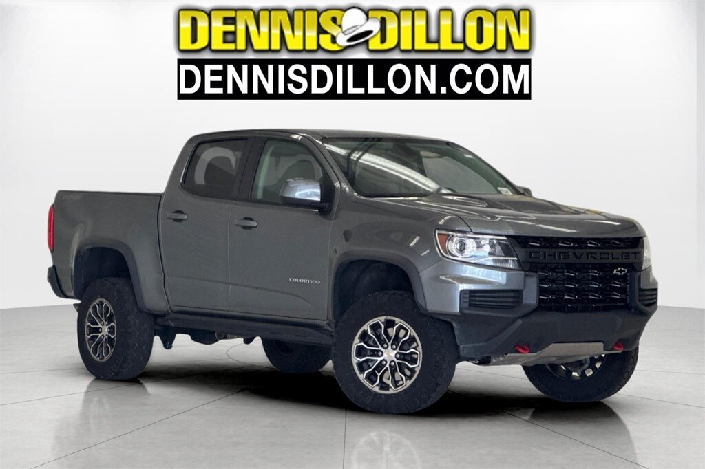 Clean CARFAX. Steel Metallic 2022 Chevrolet Colorado ZR2 4WD 8-Speed Automatic V6 3.42 Rear Axle Ratio, 4-Way Power Front Passenger Seat Adjuster, 4-Wheel Disc Brakes, 6 Speakers, 6-Speaker Audio System Feature, ABS brakes, Air Conditioning, Alloy wheels, AM/FM radio: SiriusXM, Apple CarPlay/Android Auto, Auto-dimming Rear-View mirror, Automatic temperature control, Black Rear Bumpers, Black Spray-On Bedliner w/Chevrolet Logo, Compass, Delay-off headlights, Driver 6-Way Power Seat Adjuster, Driver door bin, Driver vanity mirror, Driver-Selectable Full-Locking Front Differential, Driver-Selectable Full-Locking Rear Differential, Dual front impact airbags, Dual front side impact airbags, Electronic Stability Control, Exterior Parking Camera Rear, Front anti-roll bar, Front Bucket Seats, Front Center Armrest, Front reading lights, Front wheel independent suspension, Fully automatic headlights, HD Radio, Heated door mirrors, Heated steering wheel, Heavy-Duty Trailering Package, Hitch Guidance, Illuminated entry, Integrated Trailer Brake Controller, Leather-Appointed Seat Trim, Low tire pressure warning, Occupant sensing airbag, Outside temperature display, Overhead airbag, Overhead console, Panic alarm, Passenger door bin, Passenger vanity mirror, Power door mirrors, Power Driver Lumbar Control Seat Adjuster, Power driver seat, Power Passenger Lumbar Control Seat Adjuster, Power passenger seat, Power steering, Power windows, Premium audio system: Chevrolet Infotainment 3 Plus, Radio data system, Radio: Chevrolet Infotainment 3 Plus System, Rear reading lights, Rear seat center armrest, Rear step bumper, Rear window defroster, Remote keyless entry, Security system, SiriusXM Radio, Speed control, Speed-sensing steering, Steering wheel mounted audio controls, Tachometer, Telescoping steering wheel, Tilt steering wheel, Tow/Haul Mode, Traction control, Trip computer, Variably intermittent wipers, Wheels: 17" x 8" Graphite & Oxide Gold Aluminum, ZR2 Off-Road Package.
