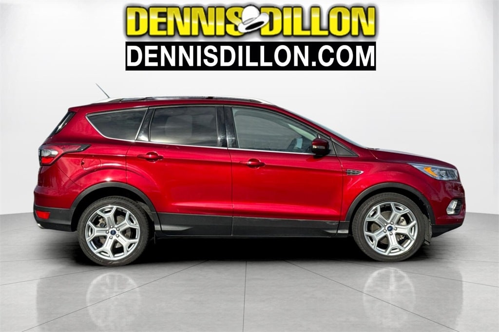 Clean CARFAX. Red 2017 Ford Escape Titanium FWD 6-Speed Automatic EcoBoost 2.0L I4 GTDi DOHC Turbocharged VCT 10 Speakers, 3.21 Axle Ratio, 4-Wheel Disc Brakes, ABS brakes, Air Conditioning, Alloy wheels, AM/FM radio: SiriusXM, Auto-dimming Rear-View mirror, Automatic temperature control, Brake assist, Bumpers: body-color, CD player, Compass, Delay-off headlights, Driver door bin, Driver vanity mirror, Dual front impact airbags, Dual front side impact airbags, Electronic Stability Control, Emergency communication system: SYNC 3 911 Assist, Exterior Parking Camera Rear, Four wheel independent suspension, Front anti-roll bar, Front Bucket Seats, Front Center Armrest, Front dual zone A/C, Front fog lights, Front reading lights, Fully automatic headlights, Garage door transmitter, Heated door mirrors, Heated front seats, Heated Leather-Trimmed Buckets w/60/40 Rear Seat, Illuminated entry, Knee airbag, Leather Shift Knob, Low tire pressure warning, Memory seat, Occupant sensing airbag, Outside temperature display, Overhead airbag, Overhead console, Panic alarm, Passenger door bin, Passenger vanity mirror, Power door mirrors, Power driver seat, Power Liftgate, Power passenger seat, Power steering, Power windows, Radio data system, Radio: AM/FM Single CD/MP3, Rear anti-roll bar, Rear Parking Sensors, Rear reading lights, Rear seat center armrest, Rear window defroster, Rear window wiper, Remote keyless entry, Roof rack: rails only, Security system, Speed control, Speed-sensing steering, Split folding rear seat, Steering wheel mounted audio controls, SYNC 3 Communications & Entertainment System, Tachometer, Telescoping steering wheel, Tilt steering wheel, Traction control, Trip computer, Turn signal indicator mirrors, Variably intermittent wipers, Wheels: 18" Sparkle Silver-Painted Aluminum.