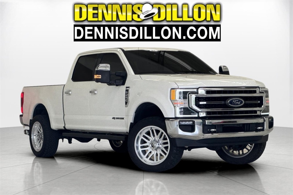 White 2020 Ford F-250SD Lariat 4WD 10-Speed Automatic Power Stroke 6.7L V8 DI 32V OHV Turbodiesel 10 Speakers, 110V/400W Outlet, 3.73 Axle Ratio, 397 Amp Alternators, 4-Wheel Disc Brakes, 6" Angular Chrome Step Bar, 6" Angular Chrome Step Bars, ABS brakes, Adjustable pedals, Air Conditioning, Alloy wheels, AM/FM radio: SiriusXM, Ambient Lighting - Fixed Color, Auto High-beam Headlights, Auto-dimming Rear-View mirror, Automatic temperature control, Body-Color Door Handles w/Chrome Insert, Brake assist, Bumpers: chrome, Chrome Exhaust Tip, Chrome Package, Compass, Delay-off headlights, Driver door bin, Driver vanity mirror, Dual front impact airbags, Dual front side impact airbags, Easy Entry®/Exit Memory Driver's Seat Feature, Electronic Stability Control, Electronic-Locking w/3.55 Axle Ratio, Emergency communication system: SYNC 3 911 Assist, Engine Block Heater, Exterior Parking Camera Rear, Flow-Through Console, Front & Rear Wheel Well Liners (Pre-Installed), Front anti-roll bar, Front Bucket Seats, Front Center Armrest, Front dual zone A/C, Front fog lights, Front Leather Seating Surfaces 40/Console/40, Front reading lights, Fully automatic headlights, FX4 Off-Road Package, GVWR: 10,000 lb Payload Package, Heated door mirrors, Heated Rear Seats, High Capacity Trailer Tow Package, Hill Descent Control, Illuminated entry, Intelligent Access w/Push-Button Start, Lariat Ultimate Package, Leather steering wheel, LED Box Lighting, Low tire pressure warning, Memory Power-Adjustable Pedals, Off-Road Specifically Tuned Shock Absorbers, Order Code 608A, Outside temperature display, Overhead airbag, Overhead console, Panic alarm, Passenger door bin, Passenger vanity mirror, Power door mirrors, Power driver seat, Power Heated/Ventilated Driver Seat w/Memory, Power Heated/Ventilated Passenger Seat, Power passenger seat, Power steering, Power Telescoping/Tilt Steering Wheel/Column, Power windows, PowerScope Trailer Tow Mirrors w/Heat, PowerScope Trailer Tow Mirrors w/Memory, Pro Trailer Backup Assist - High Capacity, Quad Beam LED Headlamps & LED Taillamps, Radio data system, Radio: B&O System by Bang & Olufsen, Rapid-Heat Supplemental Cab Heater, Rear Parking Sensors, Rear reading lights, Rear seat center armrest, Rear step bumper, Rear window defroster, Remote keyless entry, Remote Start System, Remote Tailgate Release, Security system, SiriusXM Radio, Speed control, Split folding rear seat, Steering wheel mounted audio controls, SYNC 3 Communications & Entertainment System, Tachometer, Tailgate Step & Handle, Telescoping steering wheel, Tilt steering wheel, Traction control, Trip computer, Turn signal indicator mirrors, Ultimate Trailer Tow Camera System, Unique Chrome Mirror Caps, Unique FX4 Off-Road Box Decal, Upfitter Switches (6), Variably intermittent wipers, Voice-Activated Touchscreen Navigation System, Wheels: 18" Bright Machined Cast Aluminum, Wheels: 18" Chrome PVD Aluminum.