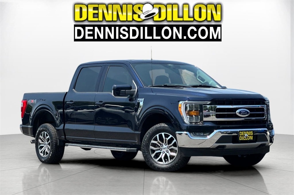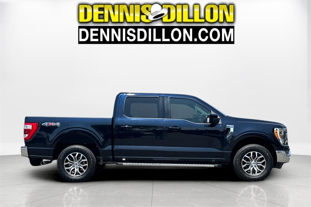 CARFAX One-Owner. Black 2021 Ford F-150 Lariat 4WD 10-Speed Automatic 3.5L V6 EcoBoost 18" Machined-Aluminum Wheels, 3.31 Axle Ratio, 4-Wheel Disc Brakes, 6" Chrome Running Board, 7 Speakers, ABS brakes, Adjustable pedals, Air Conditioning, Alloy wheels, AM/FM radio: SiriusXM with 360L, Auto High-beam Headlights, Auto Start-Stop Removal, Auto-dimming door mirrors, Auto-dimming Rear-View mirror, Automatic temperature control, Brake assist, Bumpers: chrome, Class IV Trailer Hitch Receiver, Compass, Delay-off headlights, Driver door bin, Driver vanity mirror, Dual front impact airbags, Dual front side impact airbags, Electronic Locking w/3.55 Axle Ratio, Electronic Stability Control, Emergency communication system: SYNC 4 911 Assist, Equipment Group 501A Mid, Extended Range 36 Gallon Fuel Tank, Exterior Parking Camera Rear, Front anti-roll bar, Front Center Armrest w/Storage, Front dual zone A/C, Front fog lights, Front reading lights, Front wheel independent suspension, Fully automatic headlights, Heated door mirrors, Heated front seats, Illuminated entry, Integrated Trailer Brake Controller, Leather-Trimmed 40/20/40 Front Seat, LED Sideview Mirror Spotlights, Low tire pressure warning, Max Trailer Tow Package, Memory seat, Navigation system: Connected Navigation (90-Day Trial), Occupant sensing airbag, Onboard 400W Outlet, Outside temperature display, Overhead airbag, Overhead console, Panic alarm, Passenger door bin, Passenger vanity mirror, Pedal memory, Power door mirrors, Power driver seat, Power passenger seat, Power steering, Power windows, Pro Trailer Backup Assist, Radio data system, Radio: AM/FM SiriusXM w/360L, Radio: B&O Sound System by Bang & Olufsen, Rear reading lights, Rear seat center armrest, Rear step bumper, Rear window defroster, Remote keyless entry, Security system, Speed control, Speed-sensing steering, Split folding rear seat, Steering wheel mounted audio controls, SYNC 4 w/Enhanced Voice Recognition, Tachometer, Telescoping steering wheel, Tilt steering wheel, Traction control, Tray Style Floor Liner, Trip computer, Turn signal indicator mirrors, Universal Garage Door Opener, Variably intermittent wipers, Ventilated front seats, Voltmeter.