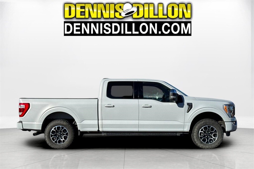 White 2021 Ford F-150 Lariat 4WD 10-Speed Automatic 3.5L V6 EcoBoost 18" Machined-Aluminum Wheels, 360 Degree Camera, 4-Wheel Disc Brakes, 7 Speakers, ABS brakes, Accent-Color Angular Step Bars, Adjustable pedals, Air Conditioning, Alloy wheels, AM/FM radio: SiriusXM with 360L, Auto High-beam Headlights, Auto-dimming door mirrors, Auto-dimming Rear-View mirror, Automatic temperature control, Body-Color Front & Rear Bumpers, Box Side Decals, Brake assist, Bumpers: chrome, Chrome Single-Tip Exhaust, Class IV Trailer Hitch Receiver, Compass, Connected Built-In Navigation, Dark 2-Bar & 1 Minor Bar Style Grille, Delay-off headlights, Driver door bin, Driver vanity mirror, Dual front impact airbags, Dual front side impact airbags, Electronic Stability Control, Emergency communication system: SYNC 4 911 Assist, Equipment Group 501A Mid, Evasive Steering Assist, Extended Range 36 Gallon Fuel Tank, Exterior Parking Camera Rear, Ford Co-Pilot360 Assist 2.0, Front anti-roll bar, Front Center Armrest w/Storage, Front dual zone A/C, Front fog lights, Front reading lights, Front wheel independent suspension, Fully automatic headlights, FX4 Off-Road Package, Heated door mirrors, Heated front seats, Illuminated entry, Integrated Trailer Brake Controller, Intelligent Adaptive Cruise Control w/Stop & Go, Intersection Assist, Lariat Sport Appearance Package, Leather-Trimmed 40/20/40 Front Seat, LED Sideview Mirror Spotlights, Low tire pressure warning, Max Trailer Tow Package, Memory seat, Navigation system: Connected Navigation (90-Day Trial), Occupant sensing airbag, Onboard 400W Outlet, Outside temperature display, Overhead airbag, Overhead console, Panic alarm, Passenger door bin, Passenger vanity mirror, Pedal memory, Power door mirrors, Power driver seat, Power passenger seat, Power steering, Power Tailgate, Power Telescoping/Glass/Folding Trailer Tow Mirrors, Power windows, Pro Trailer Backup Assist, Radio data system, Radio: AM/FM SiriusXM w/360L, Radio: B&O Sound System by Bang & Olufsen, Rear reading lights, Rear seat center armrest, Rear step bumper, Rear window defroster, Remote keyless entry, Security system, Speed control, Speed Sign Recognition, Speed-sensing steering, Split folding rear seat, Steering wheel mounted audio controls, SYNC 4 w/Enhanced Voice Recognition, Tachometer, Telescoping steering wheel, Tilt steering wheel, Traction control, Tray Style Floor Liner (47W), Trip computer, Turn signal indicator mirrors, Twin Panel Moonroof, Universal Garage Door Opener, Variably intermittent wipers, Ventilated front seats, Voltmeter, Wheels: 18" 6-Spoke Machined Aluminum.