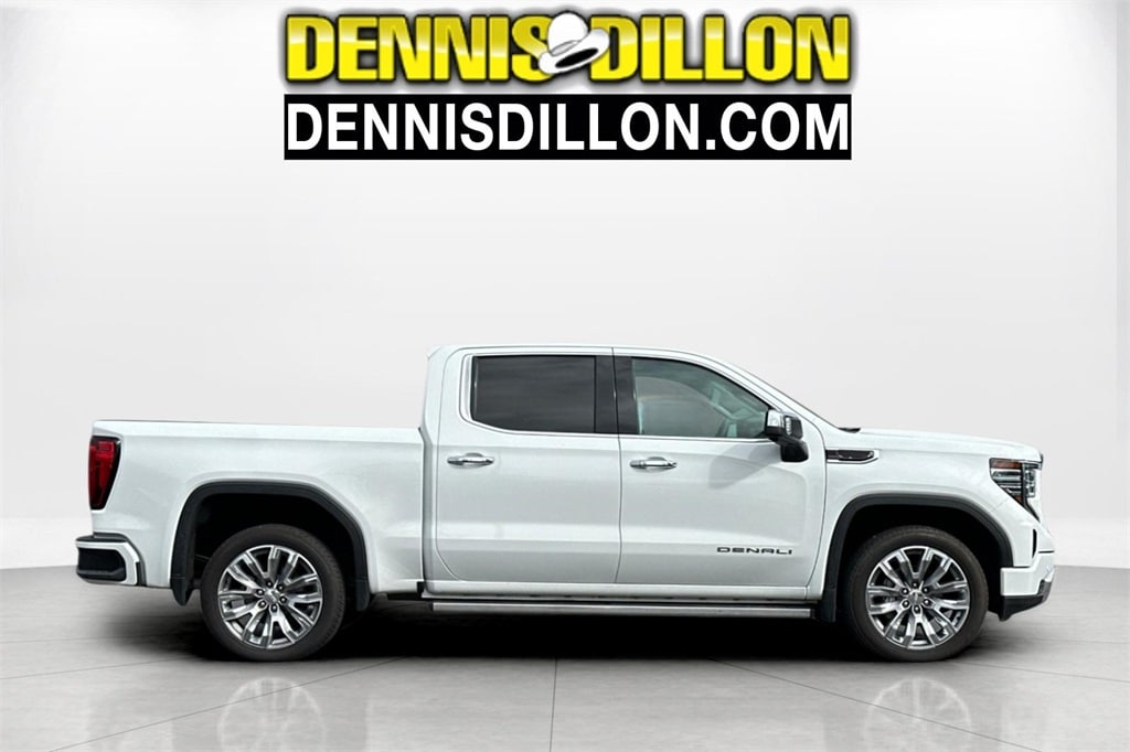 CARFAX One-Owner. Summit White 2023 GMC Sierra 1500 Denali 4WD 10-Speed Automatic EcoTec3 5.3L V8 10-Way Power Driver Seat Adjuster w/Lumbar, 10-Way Power Passenger Seat Adjuster w/Lumbar, 120-Volt Bed Mounted Power Outlet, 120-Volt Instrument Panel Power Outlet, 170 Amp Alternator, 2 Charge/Data USB Ports Inside Center Console, 2 Type-C Charge-Only Rear USB Ports, 2 USB Ports, 3.23 Rear Axle Ratio, 4-Wheel Disc Brakes, 7 Speakers, ABS brakes, Adaptive Cruise Control, Adaptive suspension, Air Conditioning, Alloy wheels, AM/FM radio, Apple CarPlay/Android Auto, Auto High-beam Headlights, Auto-dimming door mirrors, Auto-dimming Rear-View mirror, Auto-Locking Rear Differential, Automatic Emergency Braking, Automatic temperature control, Auxiliary External Transmission Oil Cooler, Bed View Camera, Brake assist, Buckle to Drive, Bumpers: body-color, Chrome Header w/Signature Denali Chrome Grille, Chrome Recovery Hooks, Chrome Wheel To Wheel Assist Steps, Color-Keyed Carpeting Floor Covering, Compass, Deep-Tinted Glass, Delay-off headlights, Denali Premium Suspension w/Adaptive Ride Control, Denali Reserve Package, Driver door bin, Driver Memory, Driver vanity mirror, Dual front impact airbags, Dual front side impact airbags, Electric Rear-Window Defogger, Electrical Steering Column Lock, Electronic Stability Control, Emergency communication system: OnStar and GMC connected services capable, Engine Block Heater, Floor-Mounted Center Console, Following Distance Indicator, Forge Perforated Leather Seat Trim, Forward Collision Alert, Front anti-roll bar, Front Bucket Seats, Front Center Armrest, Front dual zone A/C, Front fog lights, Front Pedestrian Braking, Front Rainsensing Wipers, Front reading lights, Front wheel independent suspension, Fully automatic headlights, Garage door transmitter, Genuine wood console insert, Genuine wood dashboard insert, Genuine wood door panel insert, GMC Connected Access Capable, GMC MultiPro Power Steps, HD Surround Vision, Heated 2nd Row Outboard Seats, Heated door mirrors, Heated Driver & Front Outboard Passenger Seating, Heated front seats, Heated rear seats, Heated steering wheel, Heavy-Duty Air Filter, Hill Descent Control, Hitch Guidance, Hitch Guidance w/Hitch View, Illuminated entry, In-Vehicle Trailering App, Integrated Trailer Brake Controller, IntelliBeam Automatic High Beam On/Off, Keyless Open & Start, Lane Keep Assist w/Lane Departure Warning, LED Cargo Area Lighting, Low tire pressure warning, Memory seat, Multicolor 15" Diagonal Head-Up Display, Navigation System, Not Equipped w/Steering Column Lock, Occupant sensing airbag, OnStar & GMC Connected Services Capable, Outside temperature display, Overhead airbag, Overhead console, Panic alarm, Passenger door bin, Passenger vanity mirror, Perimeter Lighting, Power Door Locks, Power door mirrors, Power driver seat, Power Front Passenger Windows w/Express Up/Down, Power Front Windows w/Driver Express Up/Down, Power passenger seat, Power Rake & Telescoping Steering Column, Power Rear Windows w/Express Down, Power Sliding Rear Window w/Rear Defogger, Power steering, Power Sunroof, Power windows, Preferred Equipment Group 5SA, Premium audio system: GMC Infotainment System, Premium Bose 7-Speaker Sound System, Push Button Start, Radio data system, Radio: Premium GMC Infotainment Audio System, Rain sensing wipers, Rear Camera Mirror, Rear Cross Traffic Braking, Rear Pedestrian Detection, Rear reading lights, Rear seat center armrest, Rear step bumper, Rear Wheelhouse Liners, Rear window defroster, Remote keyless entry, Remote Vehicle Starter System, Safety Alert Seat, Security system, SiriusXM w/360L, Speed control, Speed-sensing steering, Split folding rear seat, Spray-On Pickup Bed Liner w/Denali Logo, Steering Wheel Audio Controls, Steering wheel mounted audio controls, Tachometer, Technology Package, Telescoping steering wheel, Theft Deterrent System (Unauthorized Entry), Tilt steering wheel, Traction control, Trailer Camera Provisions, Trail