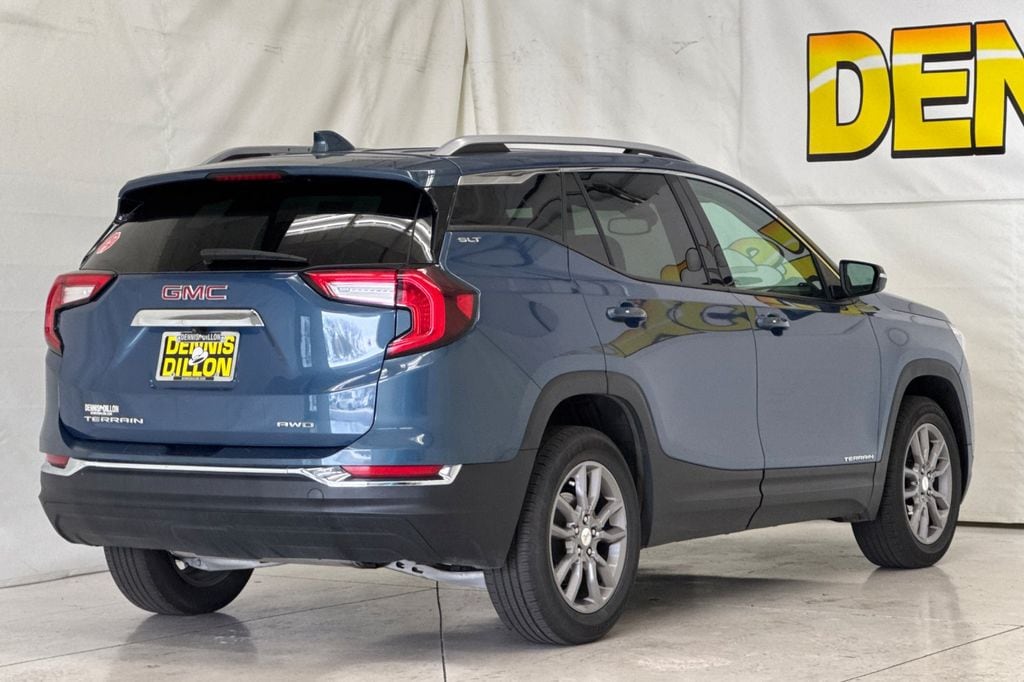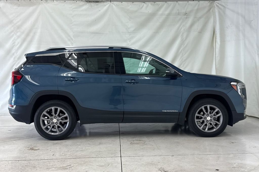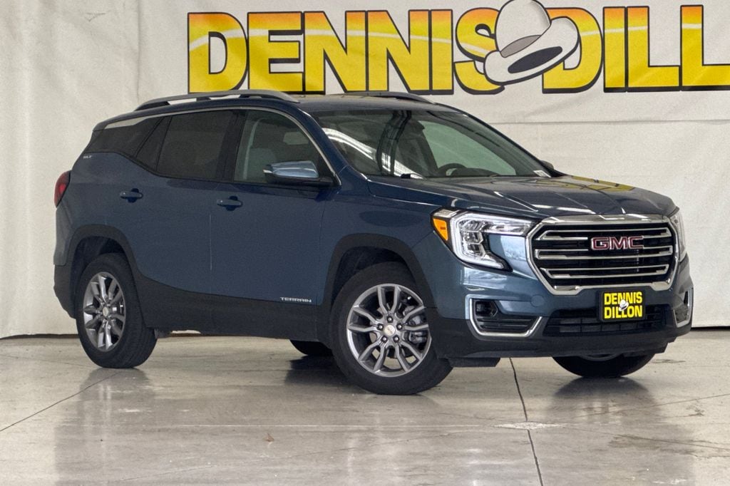 CARFAX One-Owner. Clean CARFAX. Downpour Metallic 2024 GMC Terrain SLT AWD 9-Speed Automatic 1.5L DOHC 2 USB Data Ports, 2 USB Data Ports w/SD Card Reader, 3.47 Final Drive Axle Ratio, 4-Wheel Disc Brakes, 6 Speakers, 6-Speaker Audio System Feature, 6-Way Power Front Passenger Seat, 8-Way Power Driver Seat Adjuster, ABS brakes, Air Conditioning, Alloy wheels, AM/FM radio: SiriusXM, Auto High-beam Headlights, Auto-dimming Rear-View mirror, Automatic temperature control, Bluetooth® For Phone, Brake assist, Bumpers: body-color, Compass, Delay-off headlights, Deleted 3 Years of Remote Access, Driver & Front Passenger Heated Seats, Driver door bin, Driver vanity mirror, Dual front impact airbags, Dual front side impact airbags, Electronic Stability Control, Emergency communication system: OnStar and GMC connected services capable, Four wheel independent suspension, Front anti-roll bar, Front Bucket Seats, Front Center Armrest, Front dual zone A/C, Front fog lights, Front Passenger 2-Way Power Lumbar, Front reading lights, Fully automatic headlights, Garage door transmitter, Heated door mirrors, Heated front seats, Heated steering wheel, Illuminated entry, License Plate Front Mounting Package, Low tire pressure warning, Memory seat, Occupant sensing airbag, Outside temperature display, Overhead airbag, Overhead console, Panic alarm, Passenger door bin, Passenger vanity mirror, Perforated Leather-Appointed Seat Trim, Power door mirrors, Power Driver Lumbar Control, Power driver seat, Power Liftgate, Power passenger seat, Power steering, Power windows, Preferred Equipment Group 4SA, Radio data system, Radio: GMC Infotainment Audio System w/8" Display, Rear anti-roll bar, Rear seat center armrest, Rear window defroster, Rear window wiper, Remote keyless entry, Roof rack: rails only, Security system, SiriusXM, Speed control, Speed-sensing steering, Split folding rear seat, Spoiler, Steering wheel mounted audio controls, Tachometer, Telescoping steering wheel, Tilt steering wheel, Traction control, Trip computer, Turn signal indicator mirrors, Variably intermittent wipers, Wheels: 18" x 7" Silver Painted Aluminum, Wireless Apple CarPlay/Wireless Android Auto.