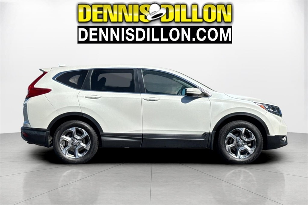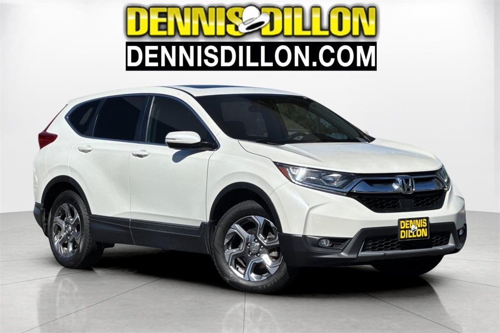CARFAX One-Owner. White 2018 Honda CR-V EX AWD CVT 1.5L I4 DOHC 16V 18" Alloy Wheels, 4-Wheel Disc Brakes, 5.64 Axle Ratio, 6 Speakers, ABS brakes, Air Conditioning, Alloy wheels, AM/FM radio: SiriusXM, Apple CarPlay/Android Auto, Auto High-beam Headlights, Automatic temperature control, Blind Spot Information (BSI) System warning, Brake assist, Bumpers: body-color, Cloth Seat Trim, Compass, Delay-off headlights, Driver door bin, Driver vanity mirror, Dual front impact airbags, Dual front side impact airbags, Electronic Stability Control, Exterior Parking Camera Rear, Four wheel independent suspension, Front anti-roll bar, Front Bucket Seats, Front Center Armrest, Front dual zone A/C, Front fog lights, Front reading lights, Fully automatic headlights, Heated door mirrors, Heated Front Bucket Seats, Heated front seats, Illuminated entry, Low tire pressure warning, Occupant sensing airbag, Outside temperature display, Overhead airbag, Overhead console, Panic alarm, Passenger door bin, Passenger vanity mirror, Power door mirrors, Power driver seat, Power moonroof, Power steering, Power windows, Radio data system, Radio: AM/FM Audio System w/6 Speakers, Rear anti-roll bar, Rear seat center armrest, Rear window defroster, Rear window wiper, Remote keyless entry, Security system, Speed control, Speed-sensing steering, Speed-Sensitive Wipers, Split folding rear seat, Spoiler, Steering wheel mounted audio controls, Tachometer, Telescoping steering wheel, Tilt steering wheel, Traction control, Trip computer, Turn signal indicator mirrors, Variably intermittent wipers.