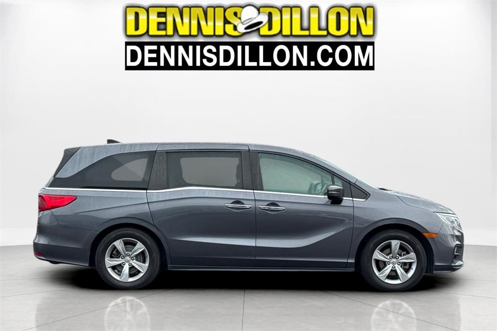 Gray 2018 Honda Odyssey EX-L FWD 9-Speed Automatic 3.5L V6 SOHC i-VTEC 24V 3rd row seats: split-bench, 4-Wheel Disc Brakes, 4.33 Axle Ratio, 7 Speakers, ABS brakes, Air Conditioning, Alloy wheels, AM/FM radio: SiriusXM, Anti-whiplash front head restraints, Apple CarPlay/Android Auto, Auto High-beam Headlights, Auto-dimming Rear-View mirror, Automatic temperature control, Blind Spot Information (BSI) System warning, Brake assist, Bumpers: body-color, Delay-off headlights, Driver door bin, Driver vanity mirror, Driver's Seat Mounted Armrest, Dual front impact airbags, Dual front side impact airbags, Electronic Stability Control, Emergency communication system: HondaLink, Exterior Parking Camera Rear, Four wheel independent suspension, Front anti-roll bar, Front Bucket Seats, Front dual zone A/C, Front fog lights, Front reading lights, Fully automatic headlights, Garage door transmitter: HomeLink, Heated door mirrors, Heated Front Bucket Seats, Heated front seats, Illuminated entry, Knee airbag, Leather Seat Trim, Leather steering wheel, Low tire pressure warning, Memory seat, Occupant sensing airbag, Outside temperature display, Overhead airbag, Overhead console, Panic alarm, Passenger door bin, Passenger seat mounted armrest, Passenger vanity mirror, Power door mirrors, Power driver seat, Power Liftgate, Power moonroof, Power passenger seat, Power steering, Power windows, Radio data system, Radio: 160-Watt AM/FM/HD/SiriusXM Audio System, Rear air conditioning, Rear anti-roll bar, Rear reading lights, Rear seat center armrest, Rear window defroster, Rear window wiper, Reclining 3rd row seat, Remote keyless entry, Security system, Speed control, Speed-sensing steering, Speed-Sensitive Wipers, Split folding rear seat, Spoiler, Steering wheel mounted audio controls, Tachometer, Telescoping steering wheel, Tilt steering wheel, Traction control, Trip computer, Turn signal indicator mirrors, Variably intermittent wipers, Wheels: 18" Silver-Painted Alloy.