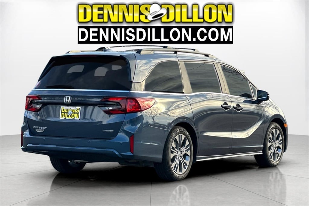 CARFAX One-Owner. Clean CARFAX. Gray 2025 Honda Odyssey Touring FWD 10-Speed Automatic 3.5L V6 SOHC i-VTEC 24V 19" Silver Alloy Wheels, 3rd row seats: split-bench, 4-Wheel Disc Brakes, 7 Speakers, ABS brakes, Adaptive Cruise Control: Adaptive Cruise Control (ACC) with Low-Speed Follow, Air Conditioning, Alloy wheels, AM/FM radio: SiriusXM, Anti-whiplash front head restraints, Apple CarPlay/Android Auto, Auto High-beam Headlights, Auto-dimming Rear-View mirror, Automatic temperature control, Blind Spot Information (BSI) System warning, Brake assist, Bumpers: body-color, Compass, Delay-off headlights, Driver door bin, Driver vanity mirror, Driver's Seat Mounted Armrest, Dual front impact airbags, Dual front side impact airbags, Electronic Stability Control, Emergency communication system: HondaLink, Exterior Parking Camera Rear, Four wheel independent suspension, Front anti-roll bar, Front Bucket Seats, Front dual zone A/C, Front fog lights, Front reading lights, Fully automatic headlights, Garage door transmitter: HomeLink, Heated door mirrors, Heated Front Bucket Seats, Heated front seats, Illuminated entry, Knee airbag, Lane departure: Lane Keeping Assist System (LKAS) active, Leather steering wheel, Leather Trimmed Seats w/Piping, Low tire pressure warning, Memory seat, Navigation system: Honda Satellite-Linked Navigation System, Occupant sensing airbag, Outside temperature display, Overhead airbag, Overhead console, Panic alarm, Passenger door bin, Passenger seat mounted armrest, Passenger vanity mirror, Power door mirrors, Power driver seat, Power Liftgate, Power moonroof, Power passenger seat, Power steering, Power windows, Radio data system, Radio: 160-Watt AM/FM/HD/SiriusXM Audio System, Rear air conditioning, Rear anti-roll bar, Rear audio controls, Rear reading lights, Rear seat center armrest, Rear window defroster, Rear window wiper, Reclining 3rd row seat, Remote keyless entry, Security system, Speed control, Speed-sensing steering, Speed-Sensitive Wipers, Split folding rear seat, Spoiler, Steering wheel mounted audio controls, Tachometer, Telescoping steering wheel, Tilt steering wheel, Traction control, Trip computer, Turn signal indicator mirrors, Variably intermittent wipers.
