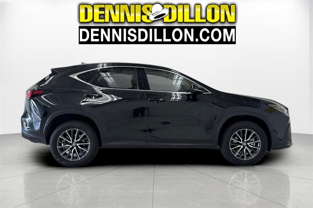 Clean CARFAX. Black 2023 Lexus NX 350h Base AWD eCVT 2.5L I4 DOHC 16V 10 Speakers, 18" Wheels, 4-Wheel Disc Brakes, ABS brakes, Air Conditioning, Alloy wheels, AM/FM radio: SiriusXM, Anti-whiplash front head restraints, Auto High-beam Headlights, Auto-dimming door mirrors, Auto-dimming Rear-View mirror, Automatic temperature control, Axle Ratio: 10.781, Brake assist, Bumpers: body-color, Delay-off headlights, Driver door bin, Driver vanity mirror, Dual front impact airbags, Dual front side impact airbags, Electronic Stability Control, Emergency communication system: Safety Connect (up to 10-year trial subscription included), Exterior Parking Camera Rear, Four wheel independent suspension, Front anti-roll bar, Front Bucket Seats, Front Center Armrest, Front dual zone A/C, Front fog lights, Front reading lights, Fully automatic headlights, Garage door transmitter: HomeLink, Heated door mirrors, Heated Front Bucket Seats, Heated front seats, Illuminated entry, Knee airbag, Leather Shift Knob, Low tire pressure warning, Navigation system: Drive Connect Cloud Navigation (subscription required), NuLuxe Seat Trim, Occupant sensing airbag, Outside temperature display, Overhead airbag, Overhead console, Panic alarm, Passenger door bin, Passenger vanity mirror, Power door mirrors, Power driver seat, Power passenger seat, Power steering, Power windows, Radio data system, Radio: 10-Speaker Sound System, Rear anti-roll bar, Rear reading lights, Rear seat center armrest, Rear window defroster, Rear window wiper, Remote keyless entry, Roof rack: rails only, Security system, Speed control, Speed-sensing steering, Split folding rear seat, Spoiler, Steering wheel mounted audio controls, Tachometer, Telescoping steering wheel, Tilt steering wheel, Traction control, Trip computer, Turn signal indicator mirrors, Variably intermittent wipers, Wireless Apple CarPlay/Wireless Android Auto.