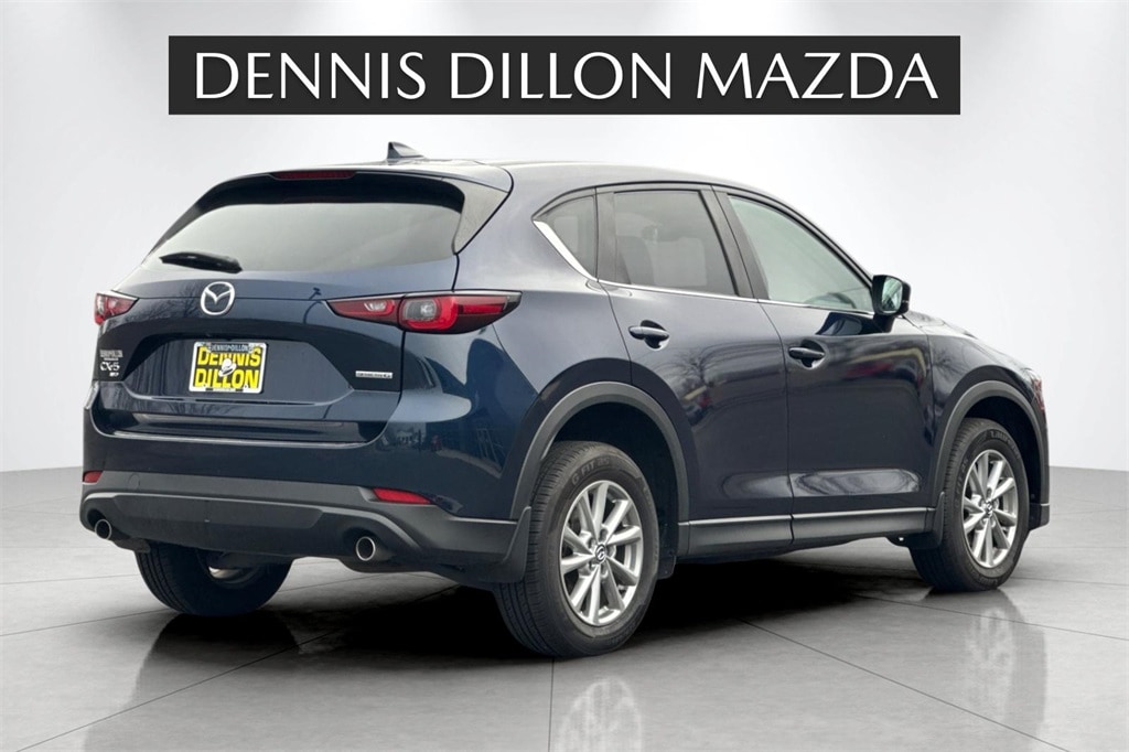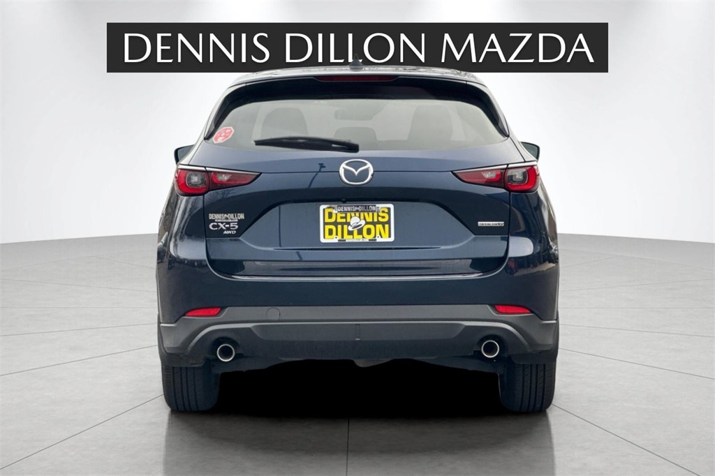 Deep Crystal Blue Mica 2023 Mazda CX-5 2.5 S Select Package AWD 6-Speed Automatic SKYACTIV® 2.5L 4-Cylinder DOHC 16V 4-Wheel Disc Brakes, 4.624 Axle Ratio, 6 Speakers, ABS brakes, Air Conditioning, All-Weather Floor Mats, Alloy wheels, AM/FM radio, AppLink/Apple CarPlay and Android Auto, Auto High-beam Headlights, Automatic temperature control, Brake assist, Bumpers: body-color, Cargo Tray, Delay-off headlights, Driver door bin, Driver vanity mirror, Dual front impact airbags, Dual front side impact airbags, E911 Automatic Emergency Notification, Electronic Stability Control, Emergency communication system: MAZDA CONNECT, Exterior Parking Camera Rear, Four wheel independent suspension, Front & Rear Splash Guards, Front anti-roll bar, Front Bucket Seats, Front Center Armrest w/Storage, Front dual zone A/C, Front reading lights, Fully automatic headlights, Heated Front Bucket Seats, Heated front seats, Illuminated entry, Infotainment System Voice Command, Leather Shift Knob, Leatherette Seat Trim, Low tire pressure warning, Multifunction Commander Control, Occupant sensing airbag, Outside temperature display, Overhead airbag, Overhead console, Pandora, Panic alarm, Passenger door bin, Passenger vanity mirror, Power door mirrors, Power driver seat, Power steering, Power windows, Radio Broadcast Data System Program Information, Radio data system, Radio: AM/FM/HD Audio System, Rain sensing wipers, Rear anti-roll bar, Rear reading lights, Rear seat center armrest, Rear window defroster, Rear window wiper, Remote keyless entry, Roof Rack Side Rails, SMS Text Msg Audio Delivery & Reply, Speed control, Speed-sensing steering, Split folding rear seat, Spoiler, Steering wheel mounted audio controls, Tachometer, Telescoping steering wheel, Tilt steering wheel, Traction control, Trip computer, Turn signal indicator mirrors, Variably intermittent wipers, Wheels: 17" x 7J Aluminum Alloy.
