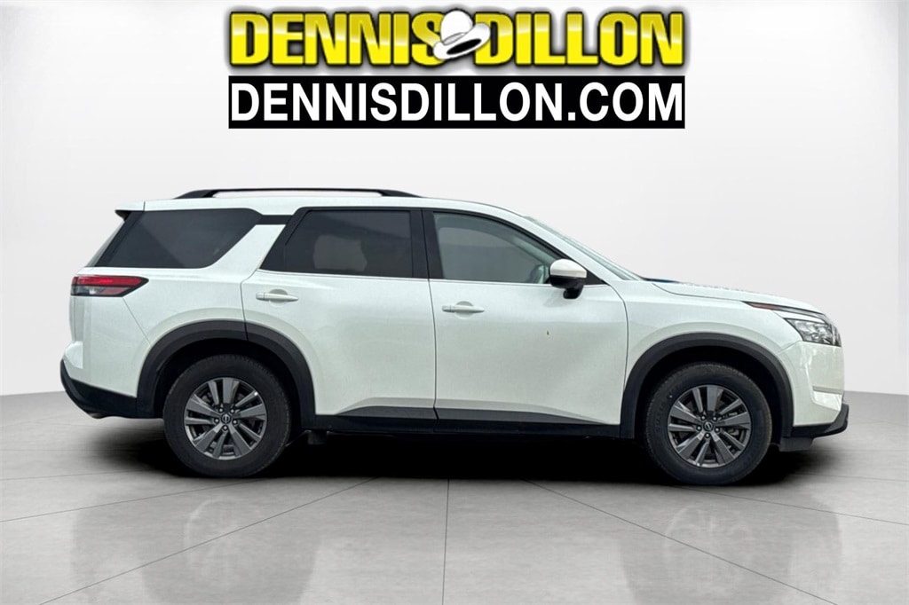 CARFAX One-Owner. Pearl White Tricoat 2024 Nissan Pathfinder SV 4WD 9-Speed Automatic 3.5L V6 DOHC 3rd row seats: bench, 4-Wheel Disc Brakes, 6 Speakers, ABS brakes, Air Conditioning, Alloy wheels, AM/FM radio: SiriusXM, Auto High-beam Headlights, Automatic temperature control, Axle Ratio: 4.334, Bench Seat Carpeted Floor Mats (Set of 4), Brake assist, Bumpers: body-color, Cloth Seating Surfaces, Delay-off headlights, Driver door bin, Driver vanity mirror, Dual front impact airbags, Dual front side impact airbags, Electronic Stability Control, Emergency communication system, Four wheel independent suspension, Front anti-roll bar, Front Bucket Seats, Front Center Armrest, Front dual zone A/C, Front reading lights, Fully automatic headlights, Heated door mirrors, Heated Front Bucket Seats, Heated front seats, Illuminated entry, Knee airbag, Leather steering wheel, Low tire pressure warning, NissanConnect featuring Apple CarPlay and Android Auto, Occupant sensing airbag, Outside temperature display, Overhead airbag, Overhead console, Panic alarm, Passenger door bin, Passenger vanity mirror, Power door mirrors, Power driver seat, Power steering, Power windows, Radio data system, Radio: AM/FM Audio System w/NissanConnect, Rear air conditioning, Rear anti-roll bar, Rear Parking Sensors, Rear reading lights, Rear seat center armrest, Rear side impact airbag, Rear window defroster, Rear window wiper, Reclining 3rd row seat, Remote keyless entry, Security system, Speed control, Speed-sensing steering, Split folding rear seat, Spoiler, Steering wheel mounted audio controls, Tachometer, Telescoping steering wheel, Tilt steering wheel, Traction control, Trip computer, Turn signal indicator mirrors, Variably intermittent wipers, Wheels: 18" x 8J Painted Alloy.