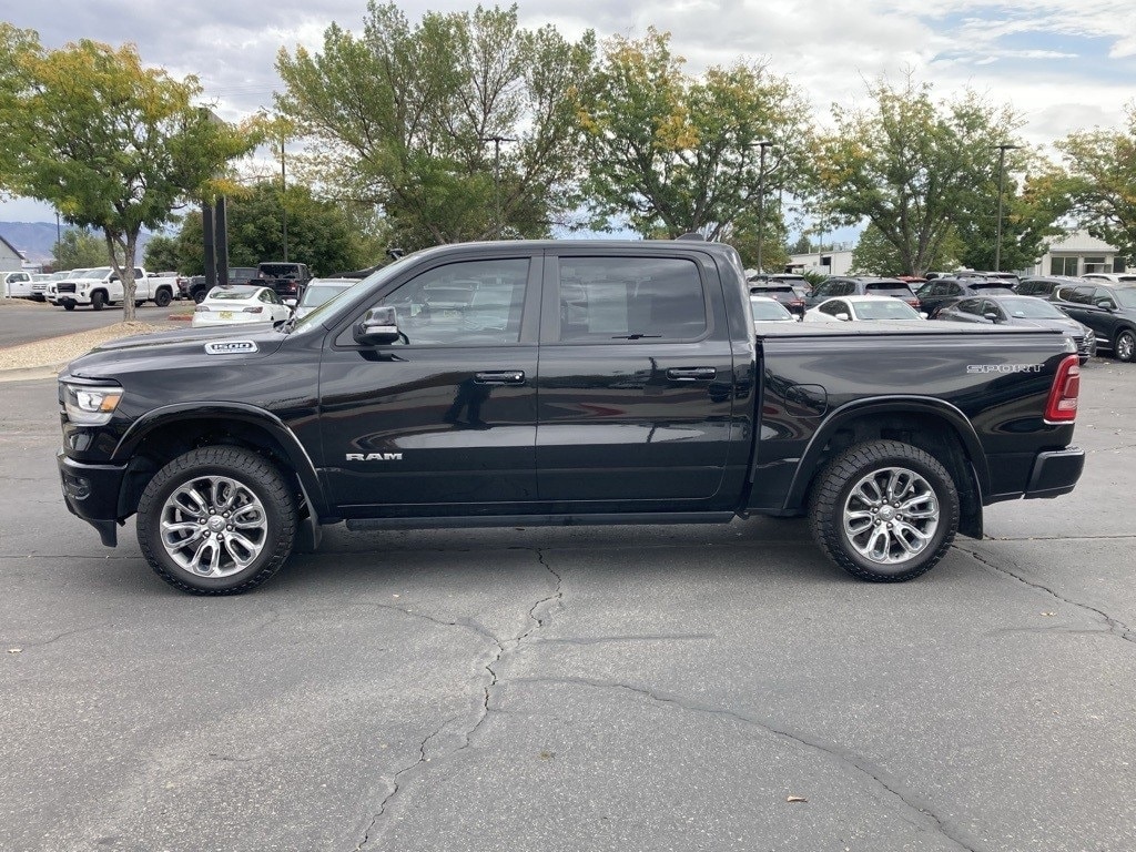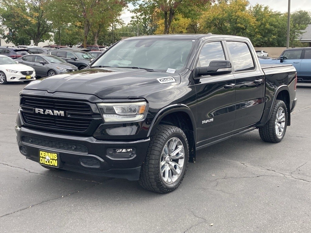 CARFAX One-Owner. Diamond Black Crystal Pearlcoat 2021 Ram 1500 Laramie 4WD 8-Speed Automatic HEMI 5.7L V8 Multi Displacement VVT #1 Seat Foam Cushion, 1-Yr SiriusXM Guardian Trial, 10 Speakers, 3 Rear Seat Head Restraints, 3.21 Rear Axle Ratio, 33 Gallon Fuel Tank, 4 Way Front Headrests, 4-Wheel Disc Brakes, 48V Belt Starter Generator, 4G LTE Wi-Fi Hot Spot, 5-Year SiriusXM Traffic Service, 5-Year SiriusXM Travel Link Service, 8.4" Touchscreen Display, ABS brakes, Adjustable pedals, Air Conditioning, Alloy wheels, AM/FM radio: SiriusXM, Anti-Spin Differential Rear Axle, Apple CarPlay, Apple CarPlay/Android Auto, Audio memory, Auto High Beam Headlamp Control, Auto-dimming door mirrors, Auto-dimming Rear-View mirror, Automatic temperature control, Black Interior Accents, Body Color Door Handles, Body Color Exterior Mirrors, Body Color Front Bumper, Body Color Premium Power Mirrors, Body Color Rear Bumper w/Step Pads, Brake assist, Bumpers: chrome, Chrome Exterior Mirrors, Compass, Delay-off headlights, Disassociated Touchscreen Display, Dome Dual LED Reading Lamp, Driver door bin, Driver Seat Memory, Driver vanity mirror, Dual front impact airbags, Dual front side impact airbags, Dual-Pane Panoramic Sunroof, Electronic Stability Control, Foam Bottle Insert (Door Trim Panel), For Details, Visit DriveUconnect.com, For More Info, Call 800-643-2112, Front anti-roll bar, Front Center Armrest w/Storage, Front dual zone A/C, Front fog lights, Front License Plate Bracket, Front reading lights, Front Seat Back Map Pockets, Front wheel independent suspension, Fully automatic headlights, Garage door transmitter, Google Android Auto, GPS Antenna Input, GPS Navigation, Grille Surround 3 Body Color Tex 2 Black, HD Radio, Heated door mirrors, Heated Front Seats, Heated front seats, Heated Second Row Seats, Heated Steering Wheel, Heated steering wheel, Illuminated entry, Integrated Center Stack Radio, Integrated Voice Command w/Bluetooth, Laramie Level B Equipment Group, Leather steering wheel, Leather Trim 40/20/40 Bench Seat, LED Dome/Reading Lamp, Low tire pressure warning, Manufacturer's Statement of Origin, Memory seat, Occupant sensing airbag, Outside temperature display, Overhead airbag, Overhead console, Panic alarm, ParkSense Front/Rear Park Assist w/Stop, ParkView Rear Back-Up Camera, Passenger door bin, Passenger vanity mirror, Pedal memory, Power 4-Way Driver Lumbar Adjust, Power 4-Way Passenger Lumbar Adjust, Power 8-Way Driver & Passenger Seats, Power door mirrors, Power driver seat, Power passenger seat, Power steering, Power windows, Quick Order Package 27H Laramie, Radio data system, Radio: Uconnect 4 w/8.4" Display, Radio: Uconnect 4C Nav w/8.4" Display, Rain Sensitive Windshield Wipers, Rear 60/40 Folding Split Recline Seat, Rear anti-roll bar, Rear seat center armrest, Rear step bumper, Rear Underseat Compartment Storage, Rear Wheelhouse Liners, Rear window defroster, Remote keyless entry, Remote Tailgate Release, Security system, SiriusXM Radio Service, SiriusXM Satellite Radio, SiriusXM Traffic Plus, SiriusXM Travel Link, Speed control, Split folding rear seat, Sport Appearance Package, Sport Decal, Sport Hood Delete, Sport Performance Hood, Steering wheel mounted audio controls, Tachometer, Tailgate Ajar Warning Lamp, Telescoping steering wheel, Tilt steering wheel, Traction control, Trailer Brake Control, Trip computer, Turn signal indicator mirrors, USB Host Flip, Variably intermittent wipers, Ventilated Front Seats, Ventilated front seats, Voltmeter, Wheels: 18" x 8" Aluminum Base Painted, Wheels: 20" x 9" Premium Painted w/Inserts.