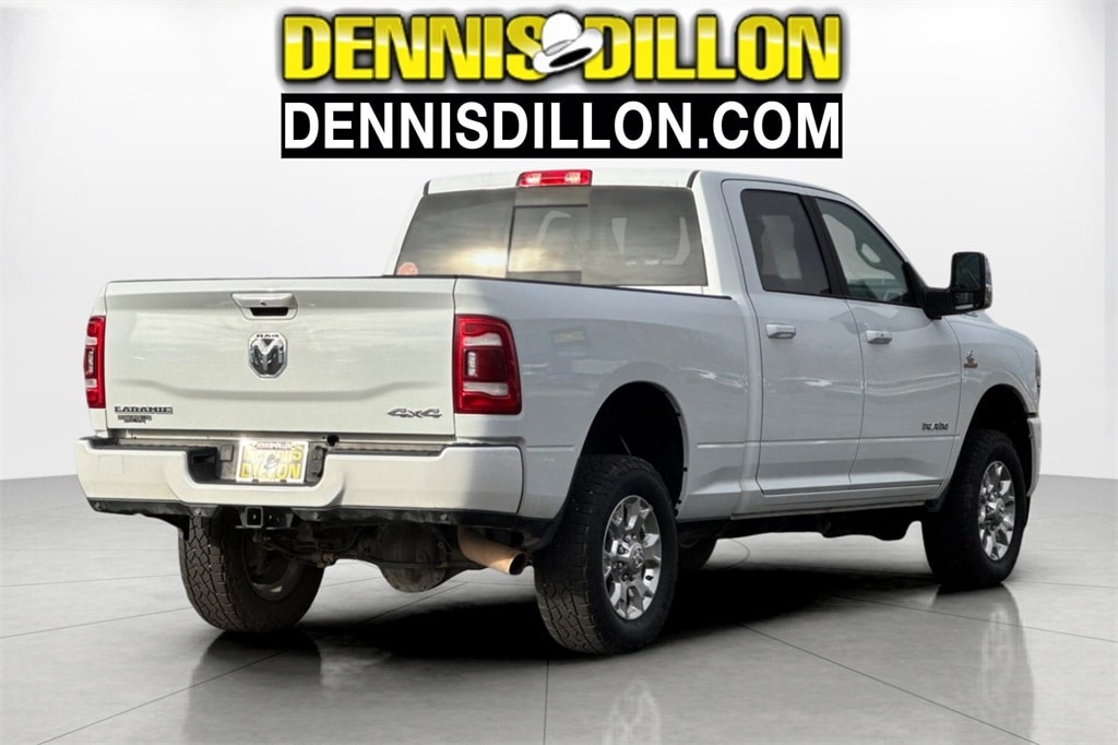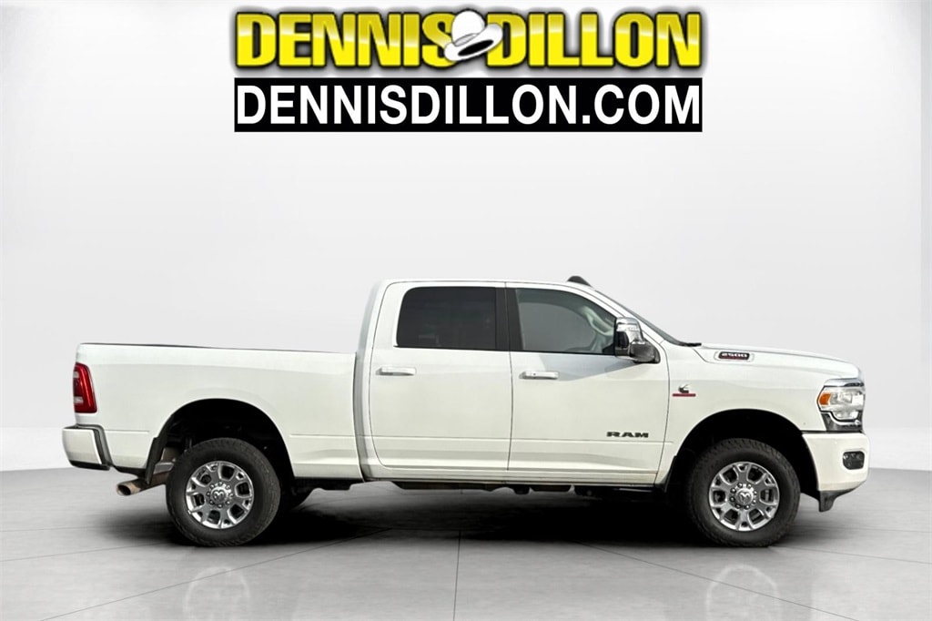 CARFAX One-Owner. Clean CARFAX. Bright White Clearcoat 2024 Ram 2500 Laramie 4WD 6-Speed Automatic Cummins 6.7L I6 Turbodiesel 10 Speakers, 115V Auxiliary Rear Power Outlet, 12" Touchscreen Display, 2 Way Rear Headrest Seat, 220 Amp Alternator, 2nd Row In Floor Storage Bins, 3.73 Axle Ratio, 4 Way Front Headrests, 4-Wheel Disc Brakes, 4G LTE Wi-Fi Hot Spot, ABS brakes, Active Noise Control System, Air Conditioning, Alexa Built-In, Alloy wheels, AM/FM radio: SiriusXM with 360L, Apple CarPlay, Apple CarPlay/Android Auto, Auto Adjust In Reverse Exterior Mirrors, Auto Dim Exterior Mirror, Auto High Beam Headlamp Control, Auto Power-Folding Mirrors, Auto-Dimming Exterior Passenger Mirror, Automatic temperature control, Blind Spot & Cross Path Detection, Brake assist, Bumpers: body-color, Center Hub, Chrome Exterior Mirrors, Compass, Connected Travel & Traffic Services, Connectivity - US/Canada, Delay-off headlights, Disassociated Touchscreen Display, Driver door bin, Driver vanity mirror, Dual front impact airbags, Dual front side impact airbags, Electronic Stability Control, Electronically Controlled Throttle, Exterior Mirrors Courtesy Lamps, Exterior Mirrors w/Heating Element, Exterior Mirrors w/Memory, Exterior Mirrors w/Supplemental Signals, Foam Bottle Insert (Door Trim Panel), For Details, Visit DriveUconnect.com, For More Info, Call 800-643-2112, Forward & Reverse Utility Lights, Front anti-roll bar, Front Center Armrest w/Storage, Front dual zone A/C, Front LED Fog Lamps, Front License Plate Bracket, Front reading lights, Front Seat Back Map Pockets, Fully automatic headlights, Garage door transmitter, Global Telematics Box Module (TBM), Google Android Auto, GPS Antenna Input, GPS Navigation, HD Radio, Heated door mirrors, Heated Front Seats, Heated front seats, Heated Steering Wheel, Heated steering wheel, Illuminated entry, Integrated Voice Command w/Bluetooth, Laramie Level 1 Equipment Group, Leather steering wheel, Leather Trim 40/20/40 Bench Seat, LED Reflector Headlamps, LED Tail Lamps, Low tire pressure warning, Manufacturer's Statement of Origin, Mirror Running Lights, Navigation System, Occupant sensing airbag, Off-Road Information Pages, Outside temperature display, Overhead airbag, Overhead console, Panic alarm, ParkSense Front/Rear Park Assist System, ParkView Rear Back-Up Camera, Passenger door bin, Passenger vanity mirror, Power 2-Way Driver Lumbar Adjust, Power 2-Way Passenger Lumbar Adjust, Power Adjust 8-Way Driver Seat, Power Adjust 8-Way Front Passenger Seat, Power Adjust Mirrors, Power Adjustable Convex Aux Mirrors, Power Adjustable Pedals w/Memory, Power door mirrors, Power driver seat, Power Heated Fold Telescopic Mirrors w/Memory, Power passenger seat, Power steering, Power Telescoping Mirrors, Power windows, Quick Order Package 2HH Laramie, Radio data system, Radio: Uconnect 5 Nav w/12.0" Display, Rain Sensitive Windshield Wipers, Rear 60/40 Folding Seat, Rear anti-roll bar, Rear Power Sliding Window, Rear reading lights, Rear seat center armrest, Rear step bumper, Rear Window Defroster, Rear window defroster, Remote keyless entry, Remote Tailgate Release, Security system, Selectable Tire Fill Alert, SiriusXM Radio Service, SiriusXM w/360L, Speed control, Split folding rear seat, Steering wheel mounted audio controls, Tachometer, Tilt steering wheel, Tip Start, Tow Hooks, Traction control, Trailer Tow Pages, Trip computer, Turn signal indicator mirrors, Variably intermittent wipers, Voltmeter, Wheels: 18" x 8.0" Polished Aluminum.