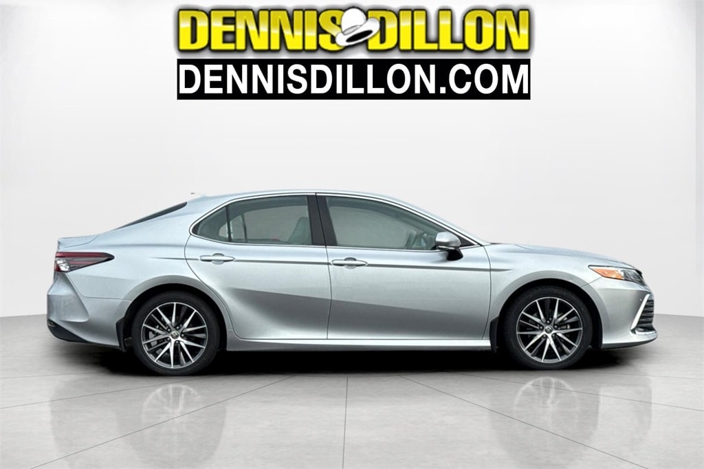 CARFAX One-Owner. Clean CARFAX. Silver 2022 Toyota Camry Hybrid XLE FWD eCVT 2.5L I4 DOHC 16V 4-Wheel Disc Brakes, 6 Speakers, ABS brakes, Air Conditioning, Alloy wheels, AM/FM radio: SiriusXM, Apple CarPlay/Android Auto, Auto High-beam Headlights, Auto-dimming Rear-View mirror, Automatic temperature control, Brake assist, Bumpers: body-color, Delay-off headlights, Driver door bin, Driver vanity mirror, Dual front impact airbags, Dual front side impact airbags, Electronic Stability Control, Emergency communication system: Safety Connect with 1-year trial, Exterior Parking Camera Rear, Four wheel independent suspension, Front anti-roll bar, Front Bucket Seats, Front Center Armrest, Front dual zone A/C, Front reading lights, Fully automatic headlights, Garage door transmitter: HomeLink, Heated door mirrors, Heated front seats, Illuminated entry, Knee airbag, Low tire pressure warning, Multi-Stage Heated Front Bucket Seats, Occupant sensing airbag, Outside temperature display, Overhead airbag, Overhead console, Panic alarm, Passenger door bin, Passenger vanity mirror, Perforated Leather Seat Trim, Power door mirrors, Power driver seat, Power passenger seat, Power steering, Power windows, Radio data system, Radio: AM/FM/HD Audio Plus, Rear anti-roll bar, Rear reading lights, Rear seat center armrest, Rear side impact airbag, Rear window defroster, Remote keyless entry, Security system, Speed control, Speed-sensing steering, Split folding rear seat, Steering wheel mounted audio controls, Telescoping steering wheel, Tilt steering wheel, Traction control, Trip computer, Turn signal indicator mirrors, Variably intermittent wipers, Wheels: 8.0J x 18" Machined Finish Alloy.