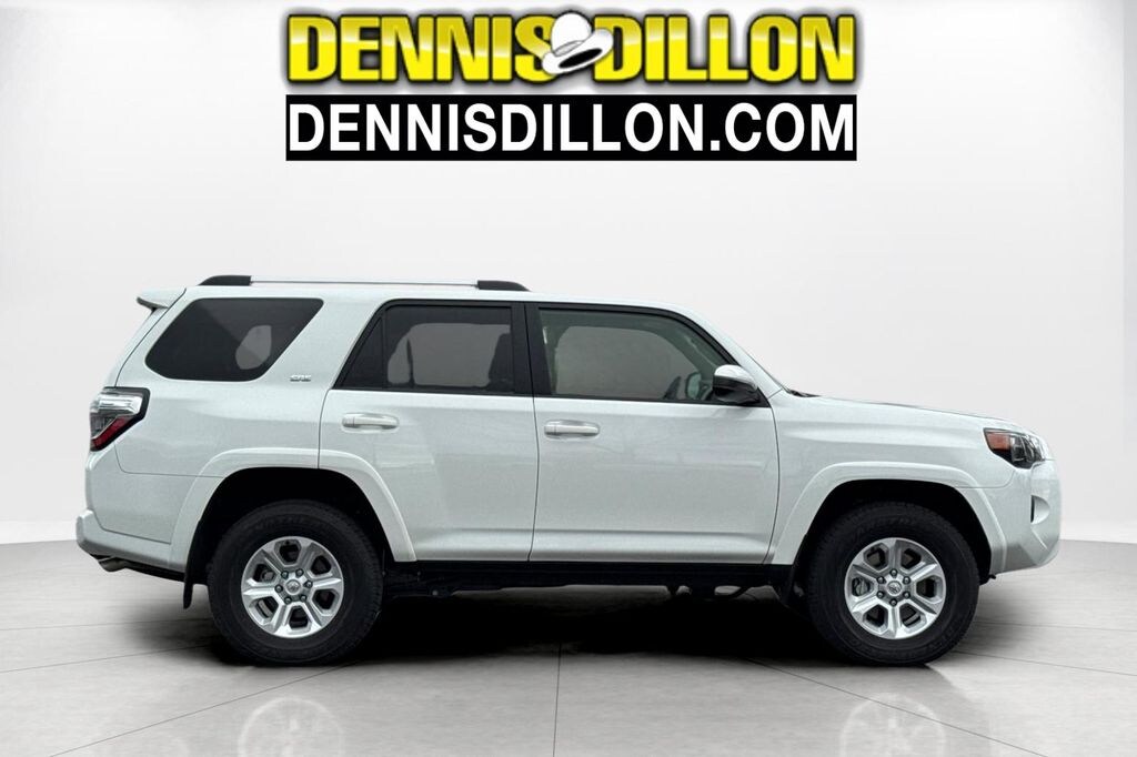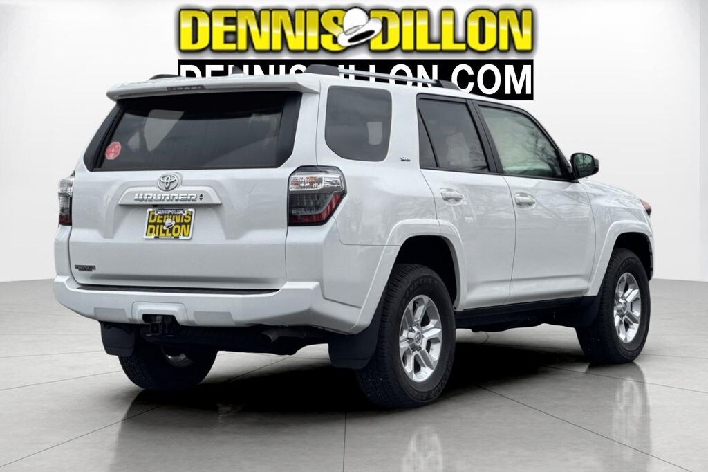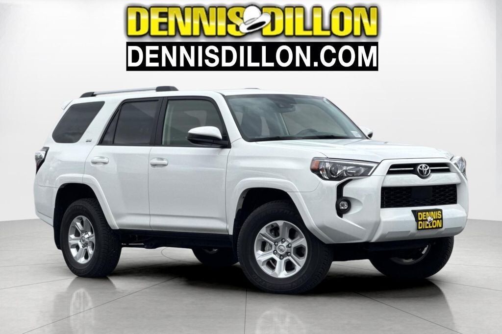 CARFAX One-Owner. Clean CARFAX. Ice Cap 2023 Toyota 4Runner SR5 4WD 5-Speed with ECT 4.0L V6 DOHC 24V 17" 6-Spoke Alloy Wheels, 3.727 Axle Ratio, 4-Wheel Disc Brakes, 8 Speakers, ABS brakes, Air Conditioning, Alloy wheels, AM/FM radio: SiriusXM, Anti-whiplash front head restraints, Apple CarPlay/Android Auto, Auto High-beam Headlights, Brake assist, Bumpers: body-color, Driver door bin, Driver vanity mirror, Dual front impact airbags, Dual front side impact airbags, Electronic Stability Control, Emergency communication system: Safety Connect (1-year trial), Exterior Parking Camera Rear, Fabric Seat Trim, Front anti-roll bar, Front Bucket Seats, Front Center Armrest, Front fog lights, Front reading lights, Front wheel independent suspension, Heated door mirrors, Illuminated entry, Knee airbag, Leather Shift Knob, Leather steering wheel, Low tire pressure warning, Occupant sensing airbag, Outside temperature display, Overhead airbag, Overhead console, Panic alarm, Passenger door bin, Passenger vanity mirror, Power door mirrors, Power driver seat, Power steering, Power windows, Radio: Audio, Rear anti-roll bar, Rear seat center armrest, Rear window defroster, Rear window wiper, Remote keyless entry, Security system, Speed control, Speed-sensing steering, Split folding rear seat, Spoiler, Steering wheel mounted audio controls, Tachometer, Telescoping steering wheel, Tilt steering wheel, Traction control, Trip computer, Variably intermittent wipers.